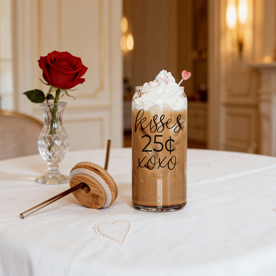 Get ready to sip on some love! This adorable 20oz glass cup cheekily announces “Kisses 25 Cents,” complete with a sweet “xoxo” underneath. Perfect for offering up affordable affection or simply enjoying your favorite beverage with a side of sass!