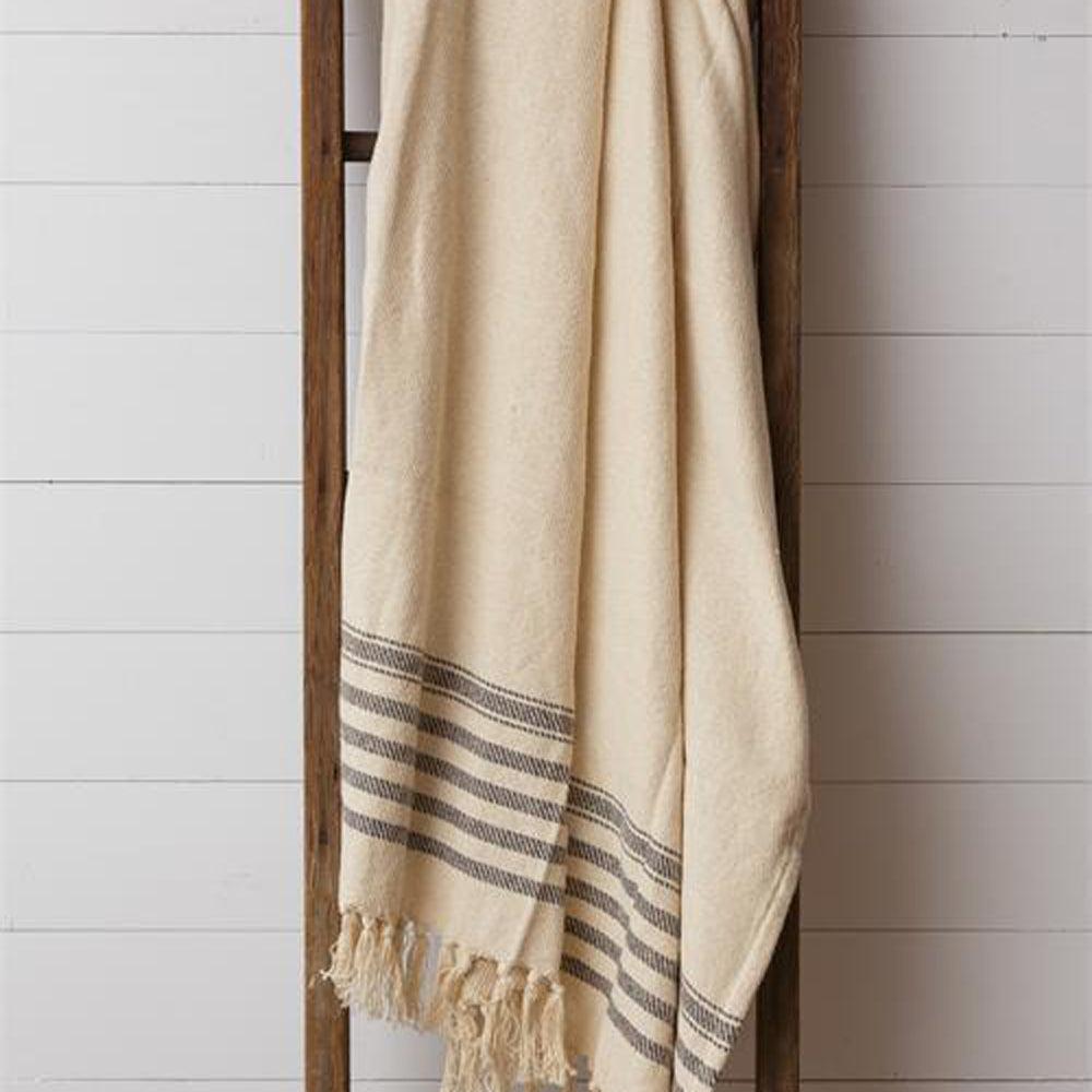 Our Caroline Cream Throw Blanket is of course cream with an elegant touch of gray stripes.