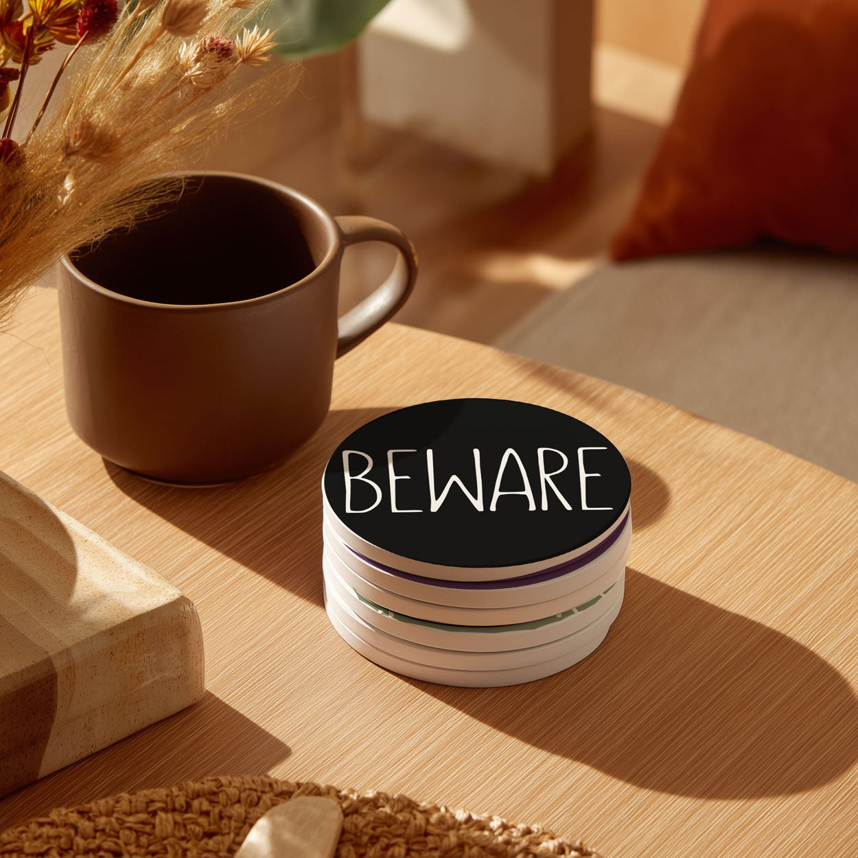 Because even ghosts need coasters! Add some wickedly wonderful personality to your Halloween festivities with our premium ceramic coasters featuring hilariously haunting phrases.