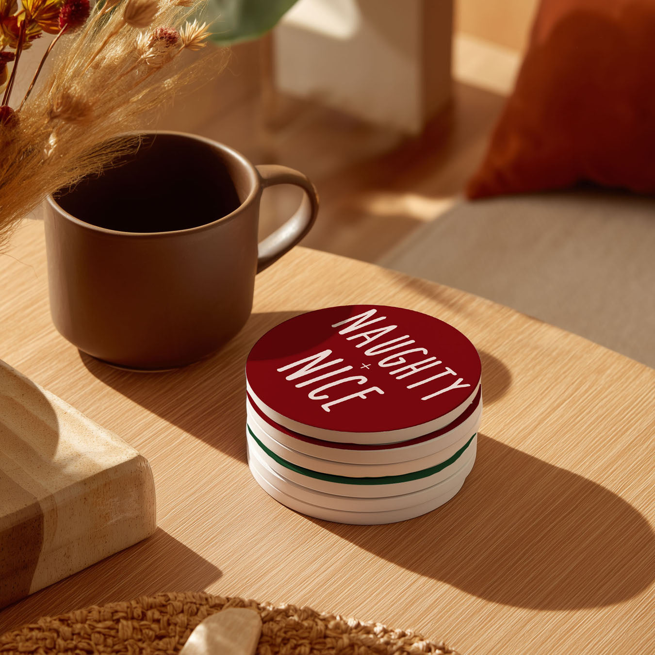 I am super happy to have your coasters. I really love the red and white braided set. Their candy cane colors added just the right seasonal touch to my coffee table. They work perfectly and are very well made.