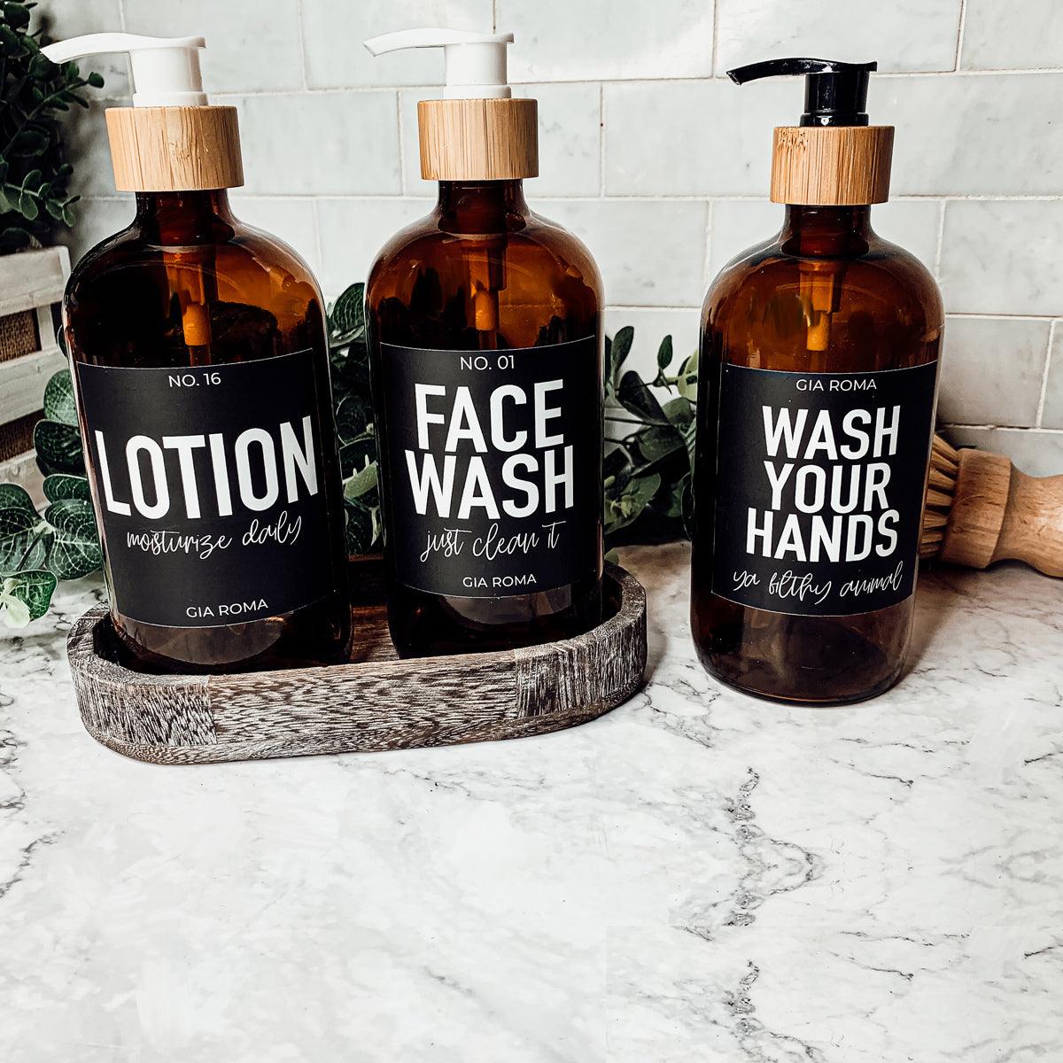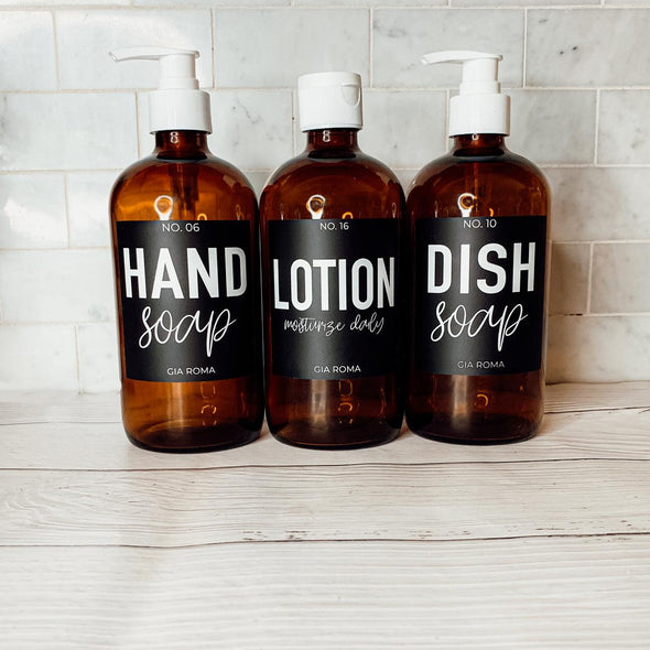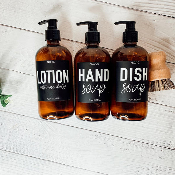 Spruce up your bathroom or kitchen countertop with these Glass Refill Bottles! Help save money and the planet by using refill bottles and add a touch of style to your home while doing it!
