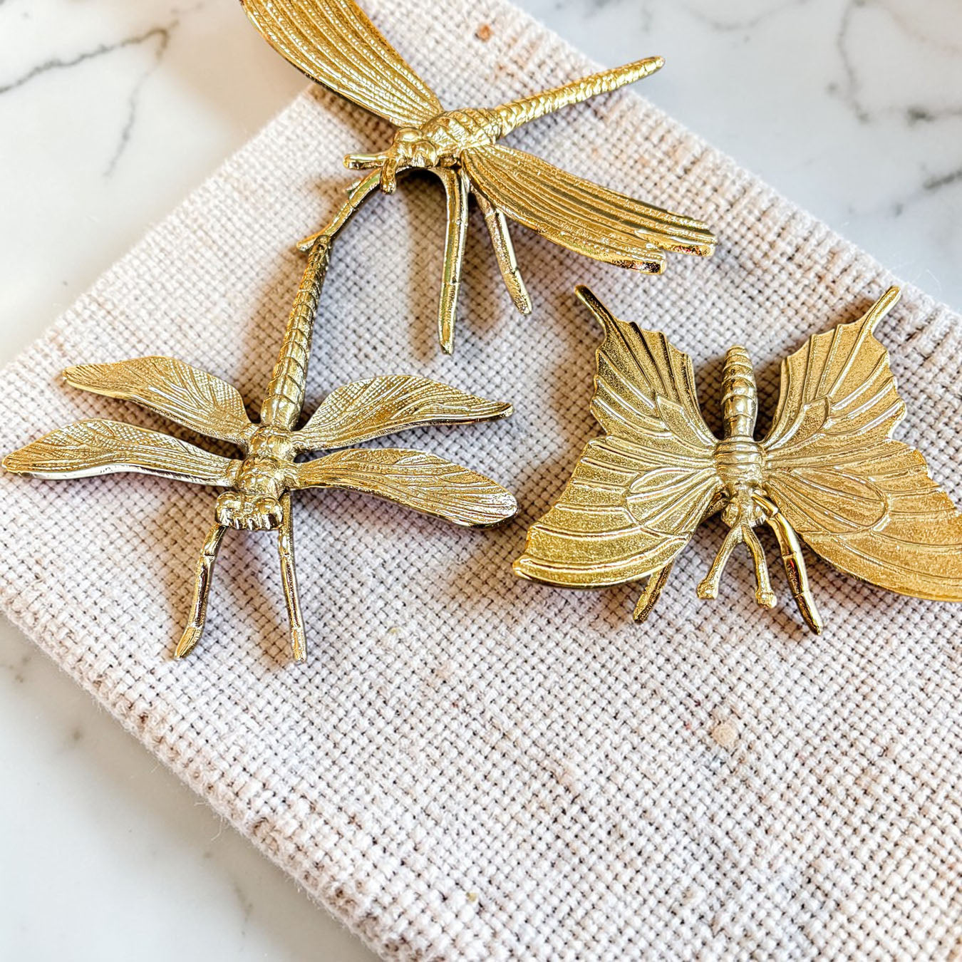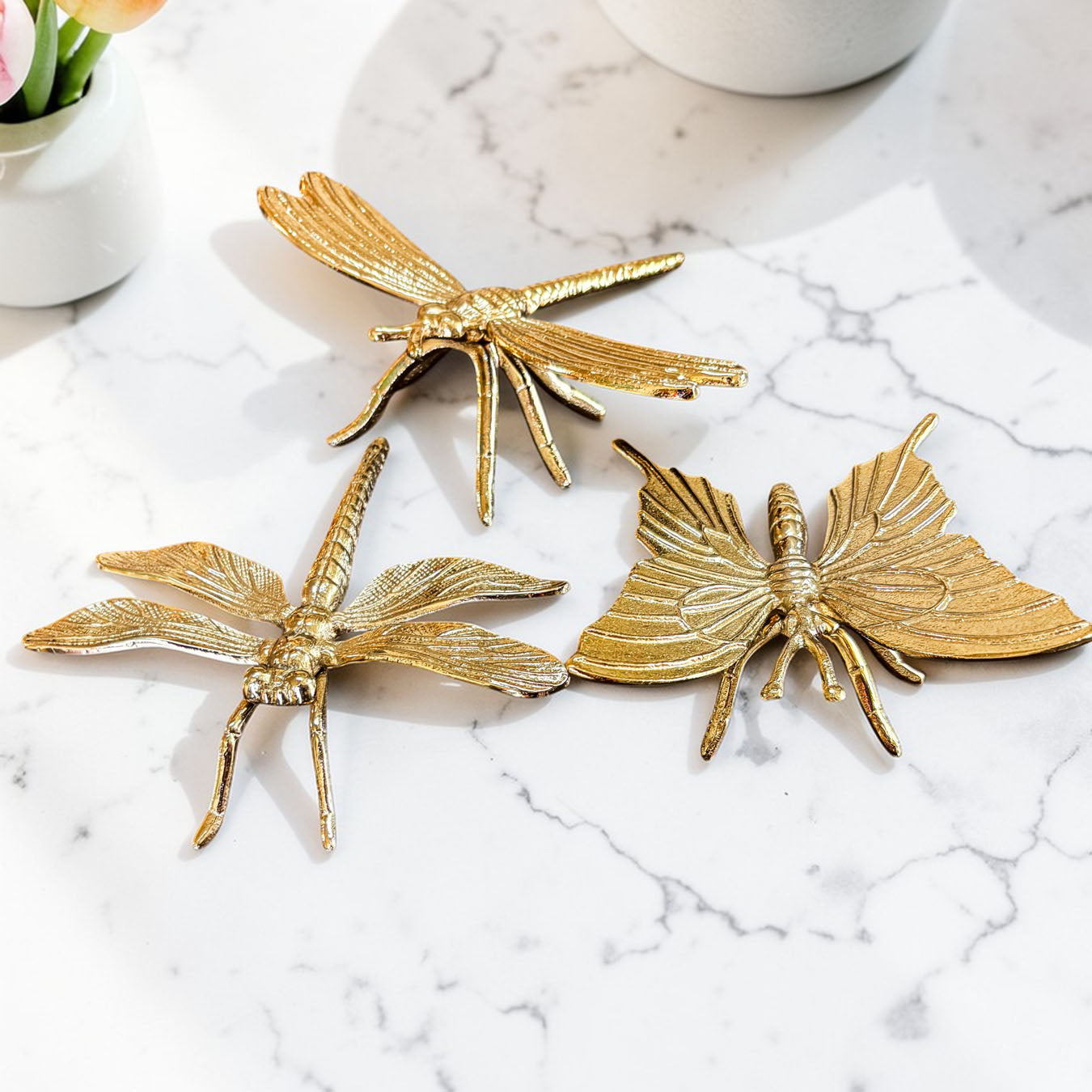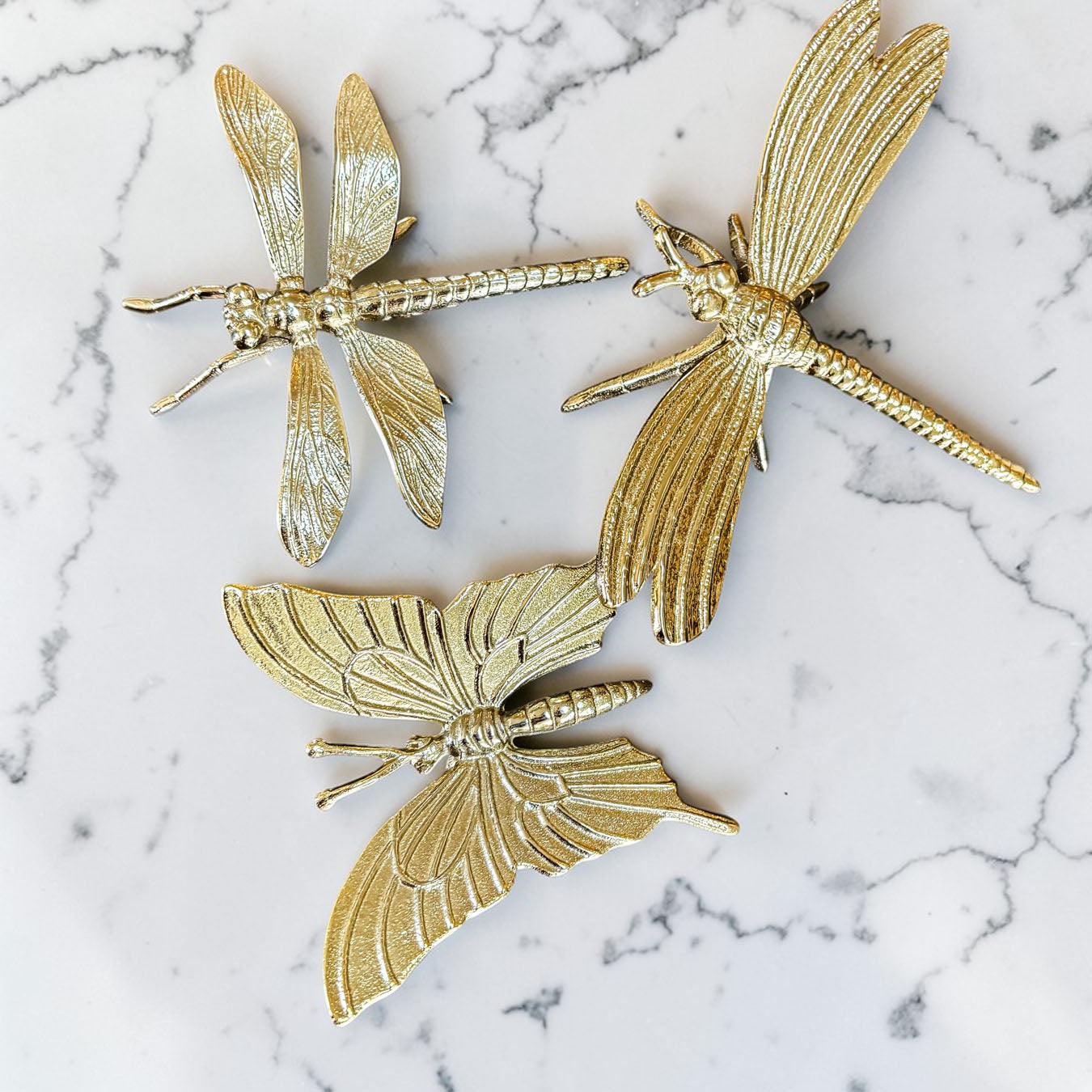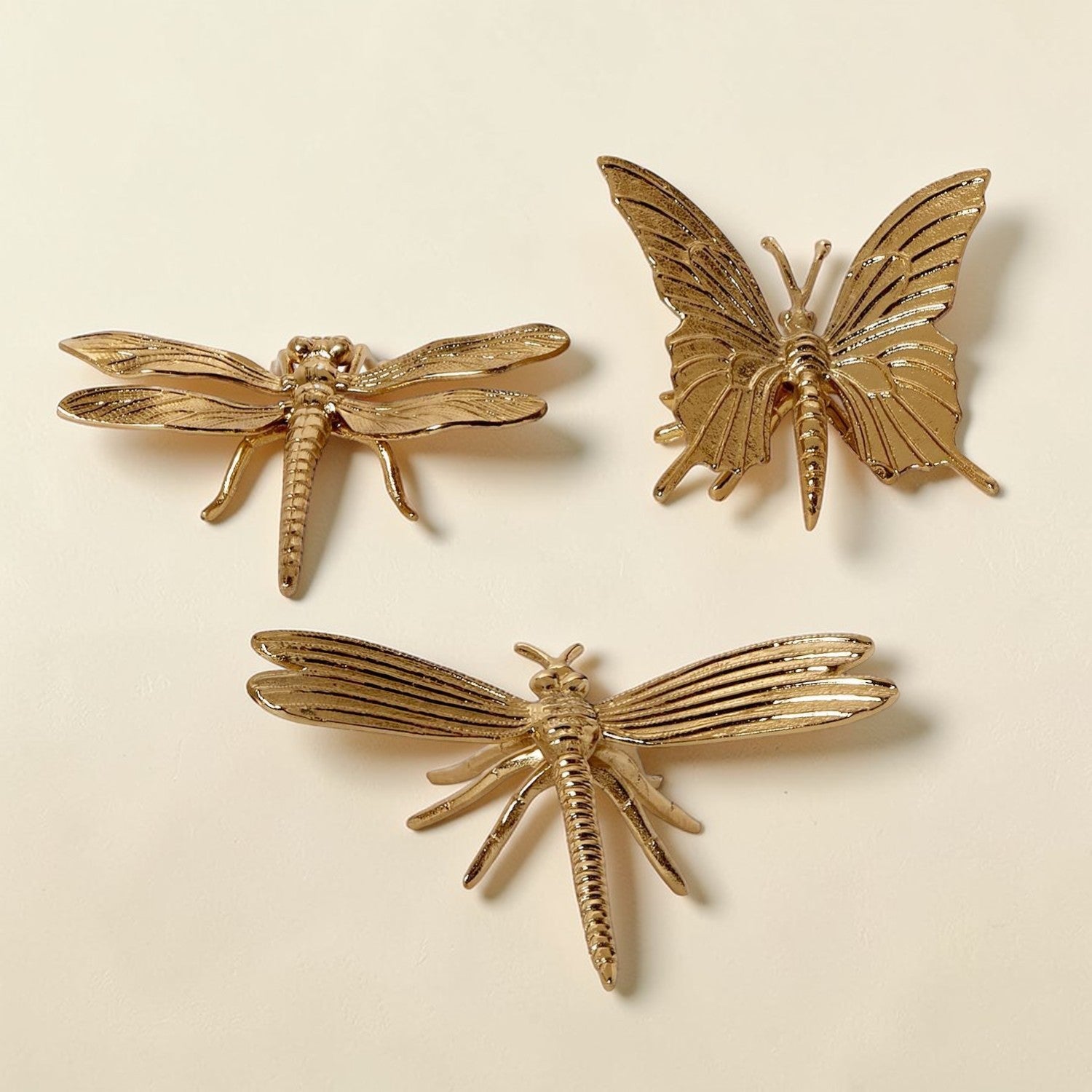 Meet the Golden Nature Decor Collection — a trio of metallic charm featuring a butterfly or dragonfly who clearly skipped their bug meeting and decided to become interior designers instead.