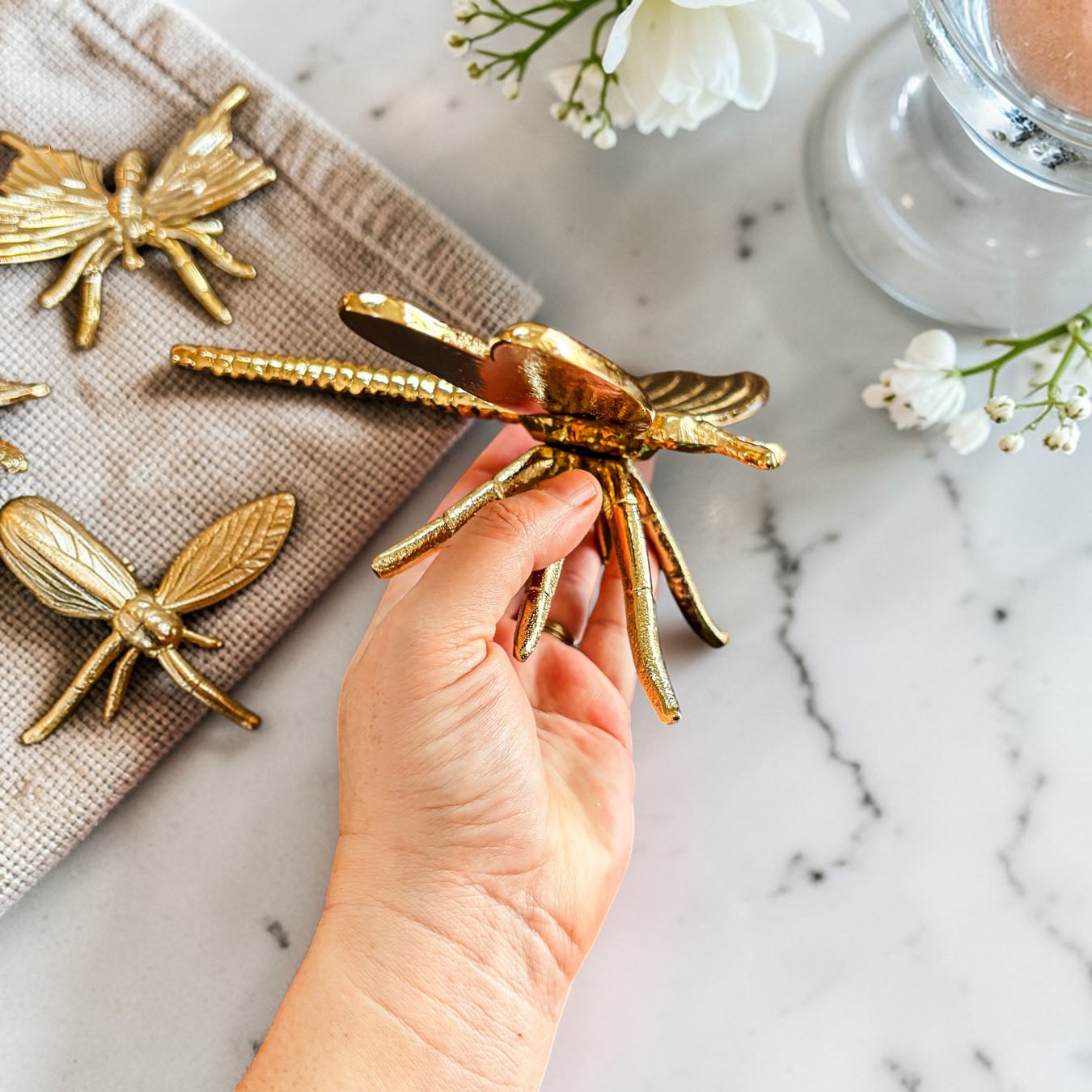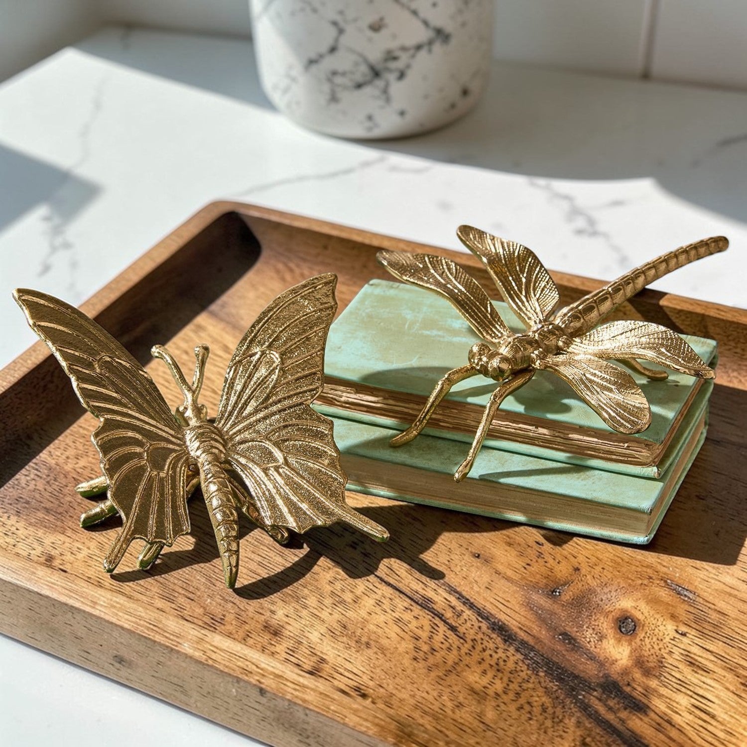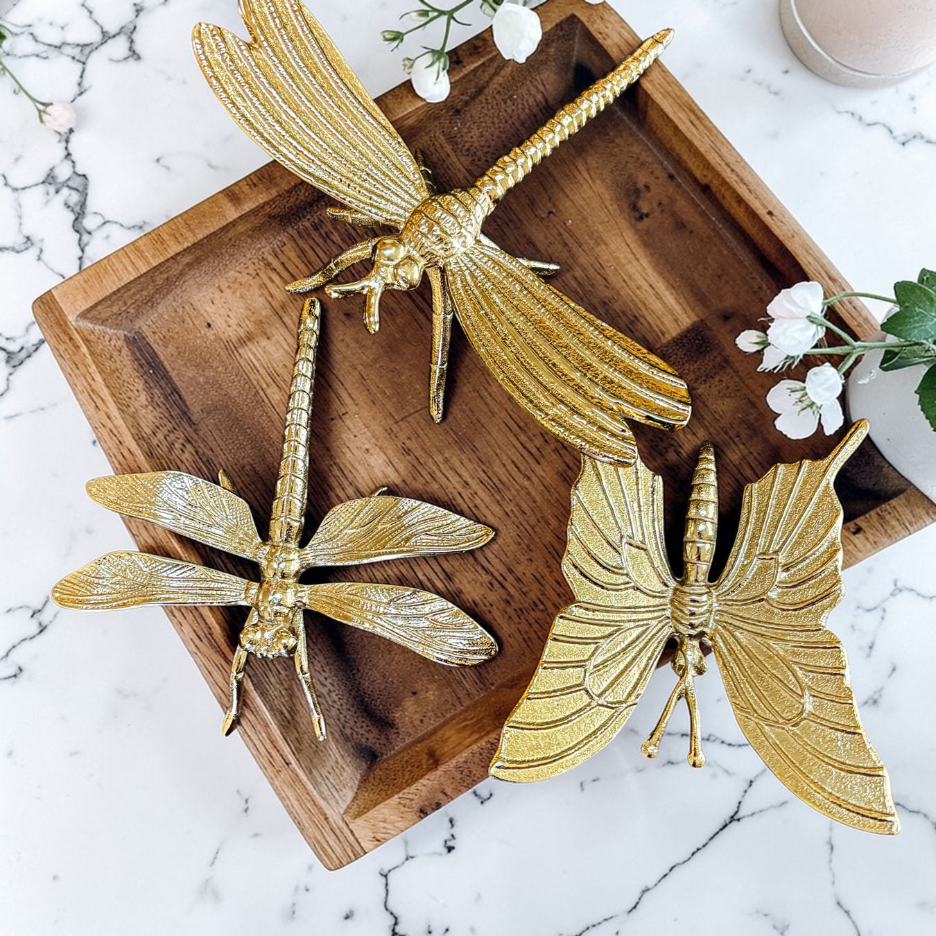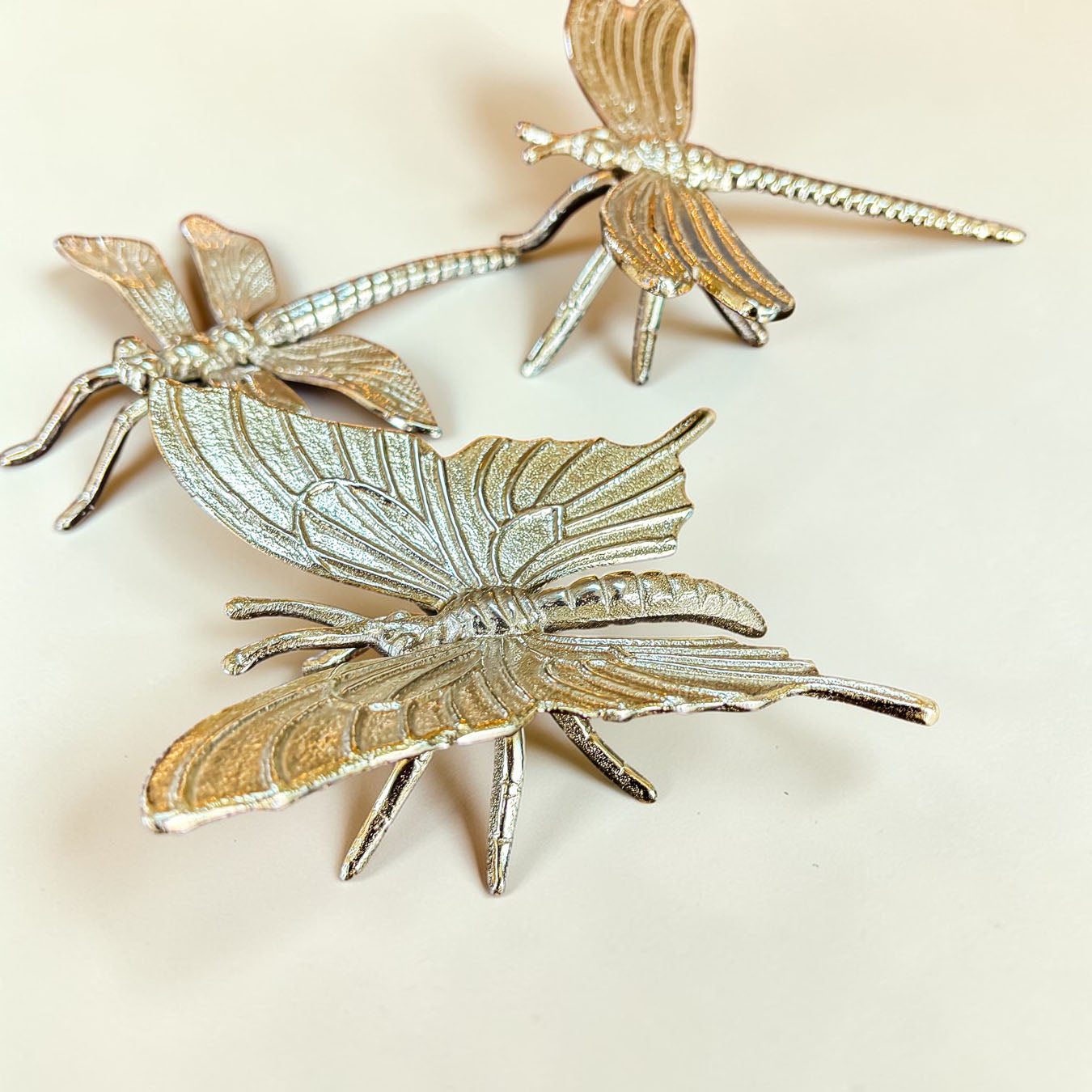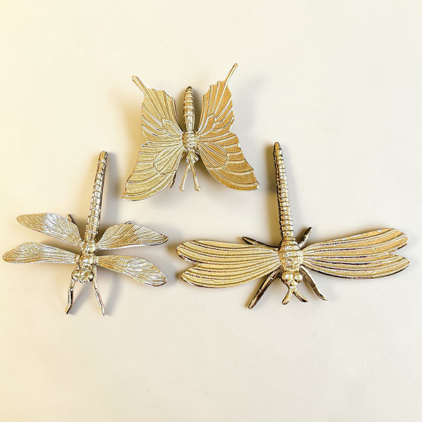 Meet the Golden Nature Decor Collection — a trio of metallic charm featuring a butterfly or dragonfly who clearly skipped their bug meeting and decided to become interior designers instead.