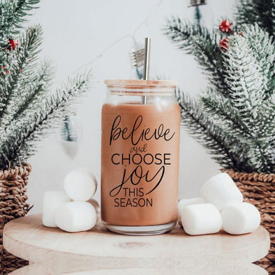 Boho Christmas Glass Tumblers with LId for sale near me.