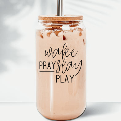 Holiday coffee accessory – 17oz glass tumbler for Christmas drinkware display