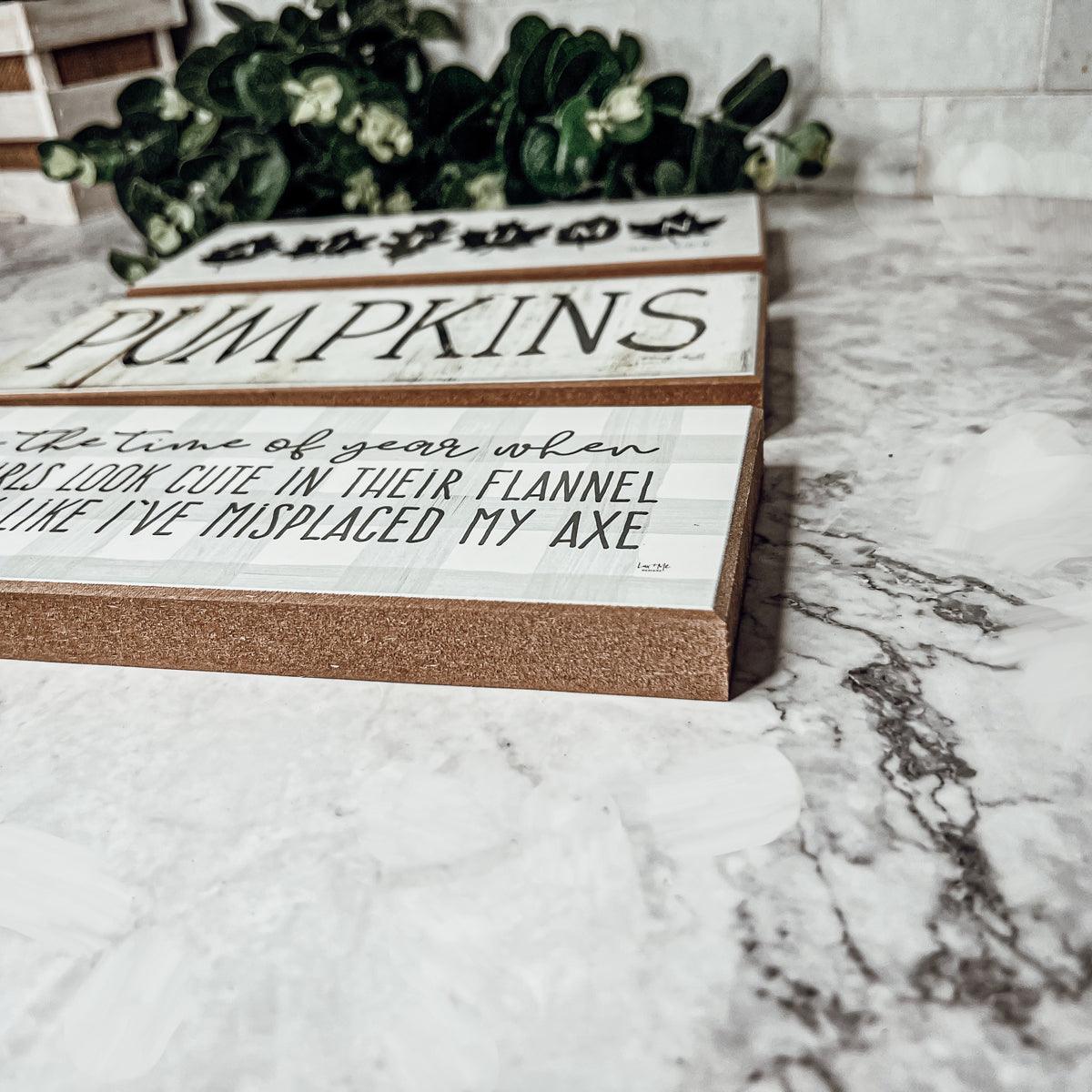 Thick good quality wood - Handmade Signs. Due to thickness & durability it is perfect to display on a table-top, shelf or mantle and freestanding able.