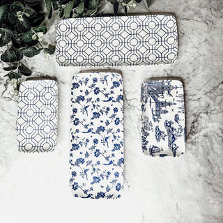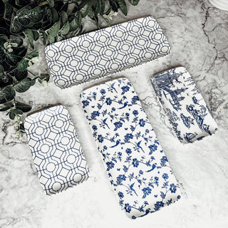 Set up your table with colors, patterns and designs of chinoiserie! This set is just remarkably wonderful. Comes in assorted 2 sizes large and small in 3 different blue and white chinoiserie inspired patterns.