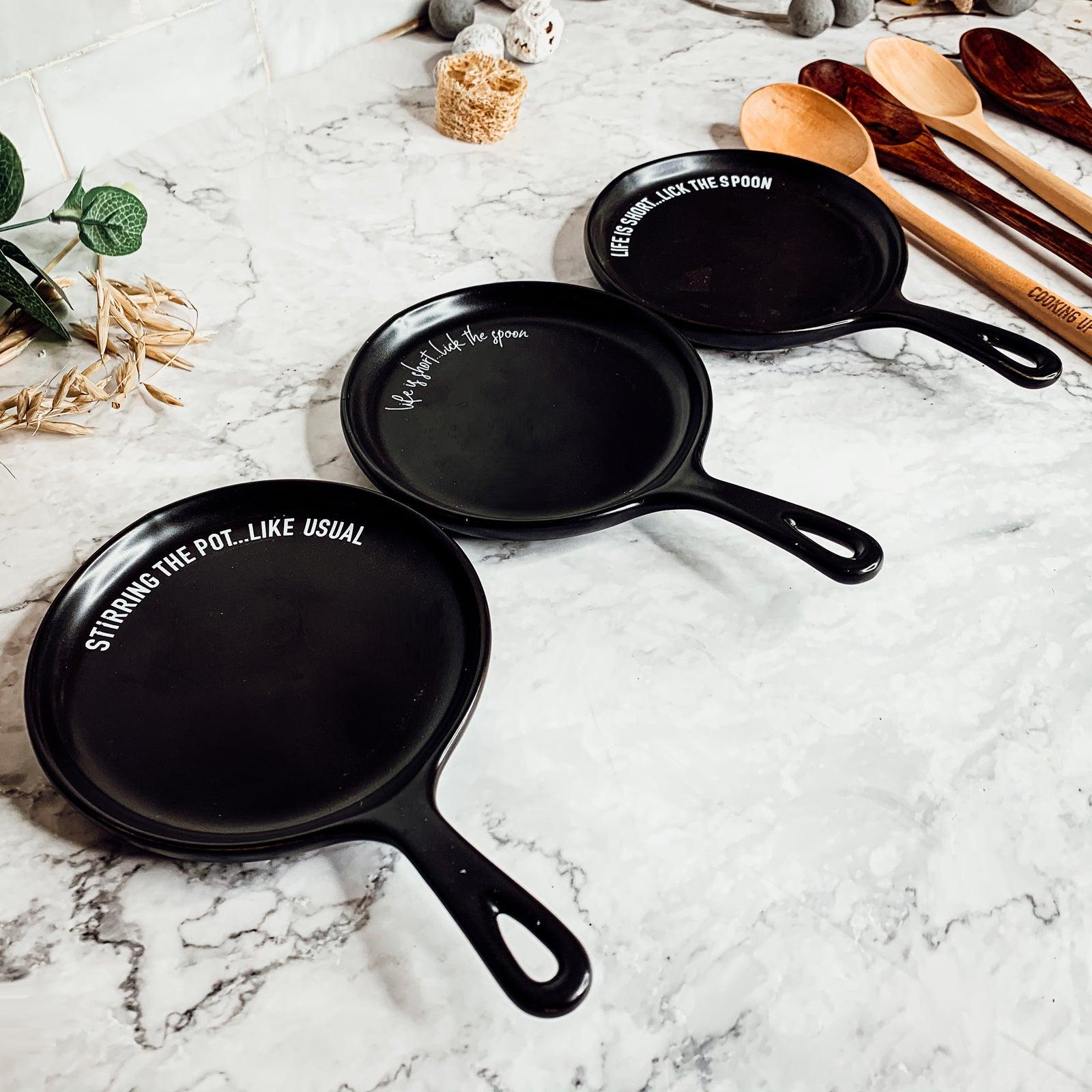 - Spoon Rest New Styles : 7" L x 1/4" H x 4.5" (pan/round portion)