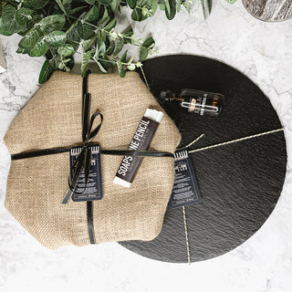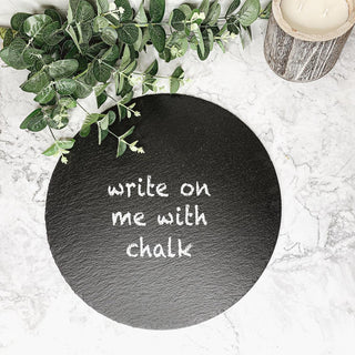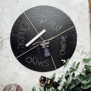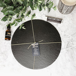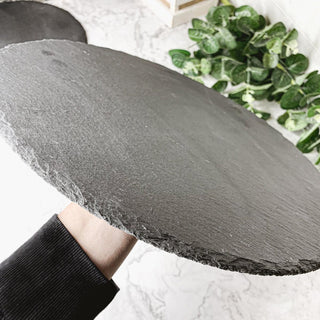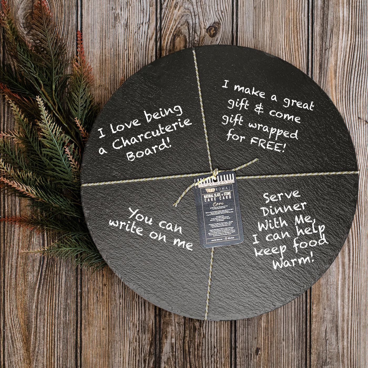 Each has a natural edge - leaving a distinctive natural surface for serving cheeses & hors d'oeurvres. Use chalk or soapstone to write on it whenever you'd like!