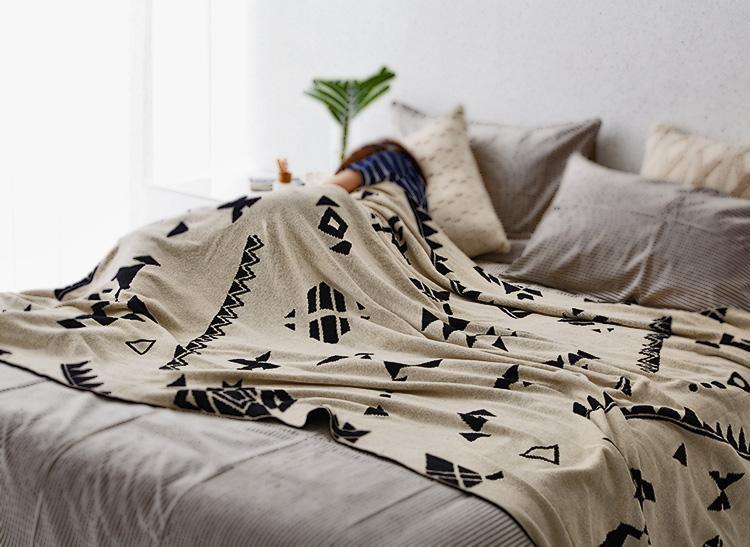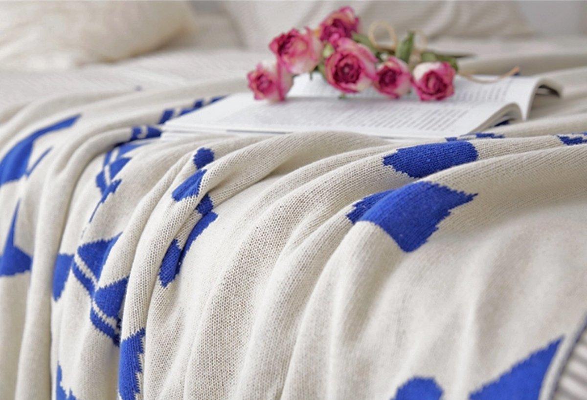 - High quality geometric jacquard knitted, Grade A, 100% cotton blanket.