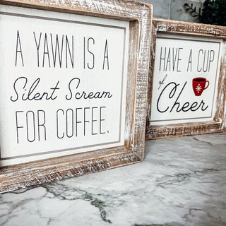 The perfect sign above your coffee bar or coffee maker! With the one side having a red mug with a snowflake, makes it the perfect side to display once Christmas approaches!