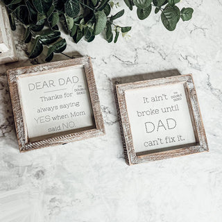 "Dear Dad...Thanks for always saying YES when Mom said NO." on the other side.