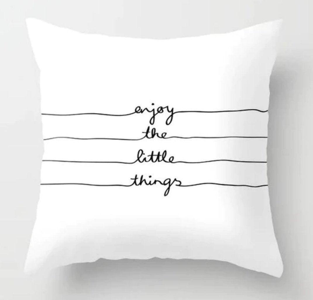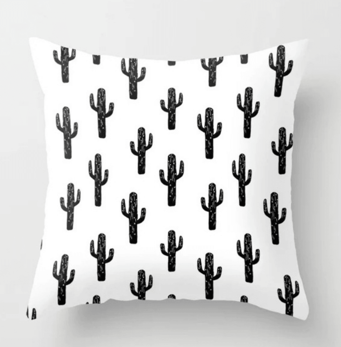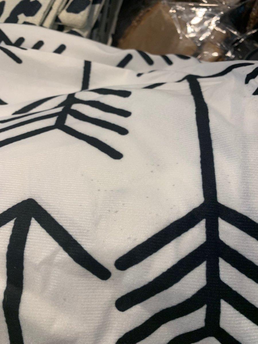 - White pillow with small black cactus, Queen Bee, Leopard Print, Black X's, Grunge Strokes, White w/ Black Triangles, Black & Marble (various issues-see pics).