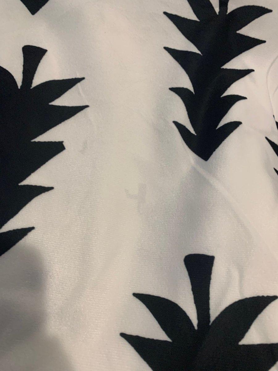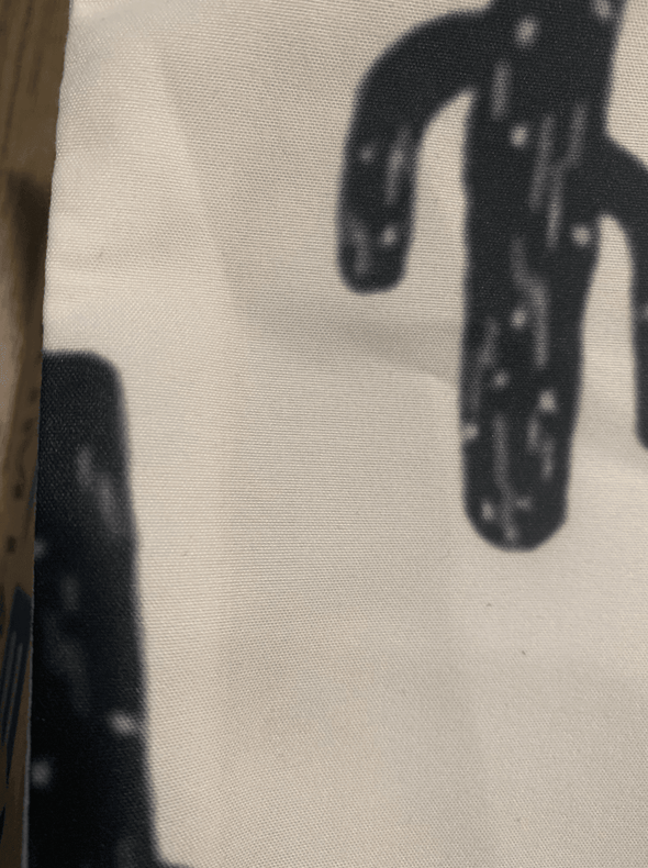 - White W/ Black Arrows, Animal Face, Pine Trees; all of these have small random splotches on them (see pics).