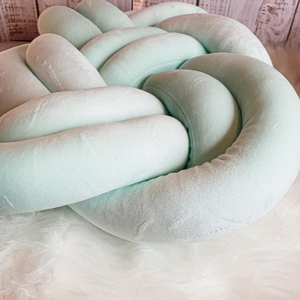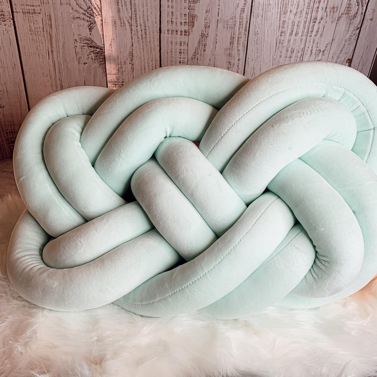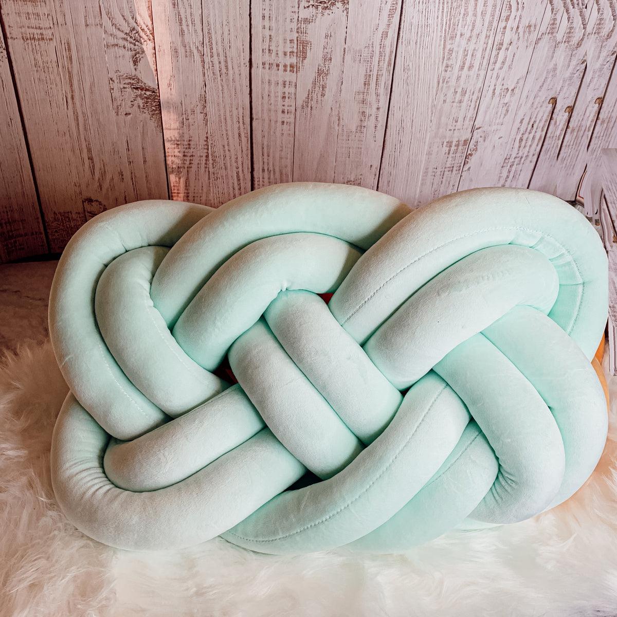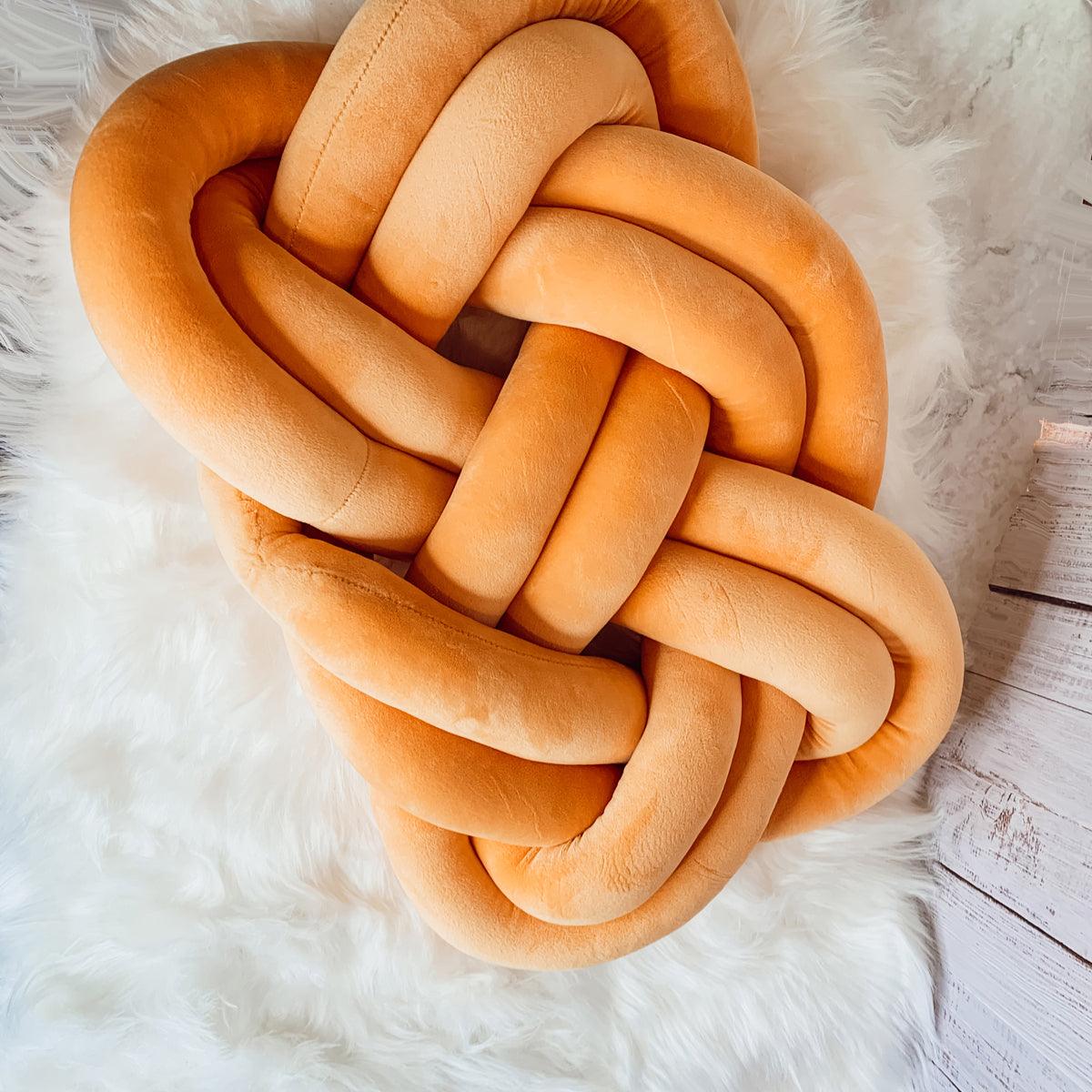 Spiral knot pillow by Gia Roma. Made by hand knot pillow, 2 ring style.