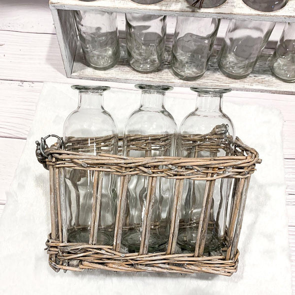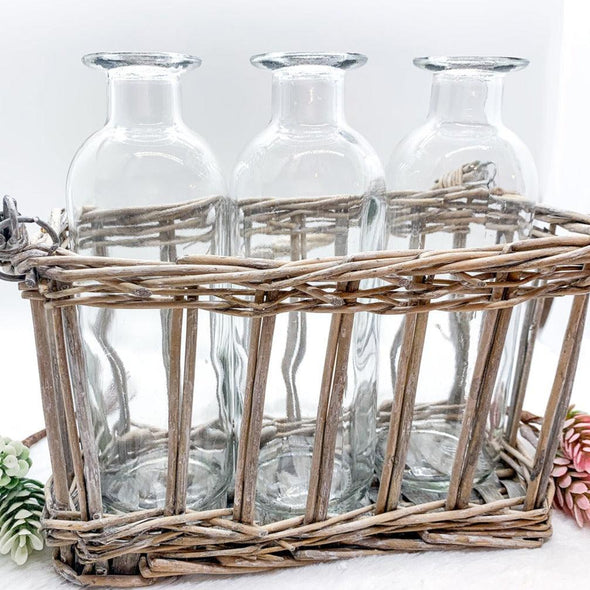 Gorgeous 3 piece vase set that come with a Willow Wrapped Casing. Each made by hand.