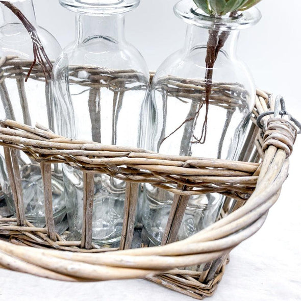 Bottle: 4 1/2" H x 2" Dia; Basket: 8 1/4" W x 3 1/2" D x 5 1/2" H