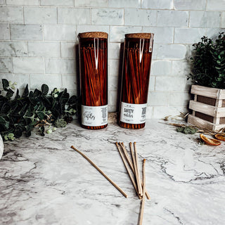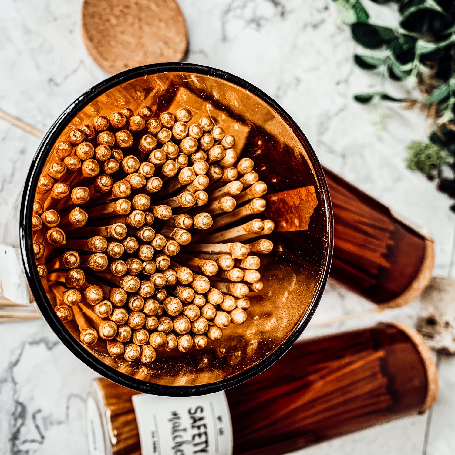 Extra Large Safety Matches. In gorgeous Autumn Amber Glass Jar with a Cork Lid. Poplar Wood & Glass.