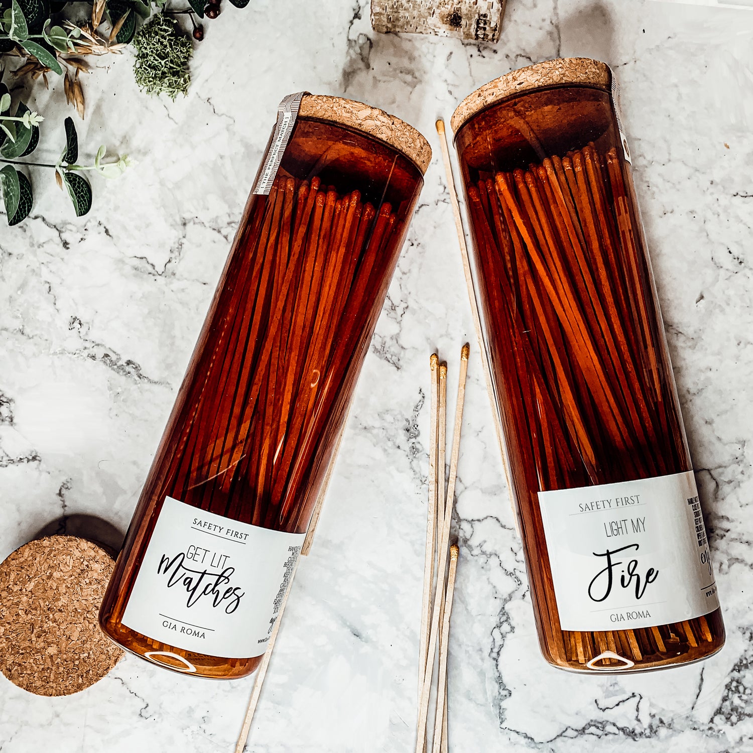 Choose your label. Each jar has a striker pad on it for ease of lighting your match.