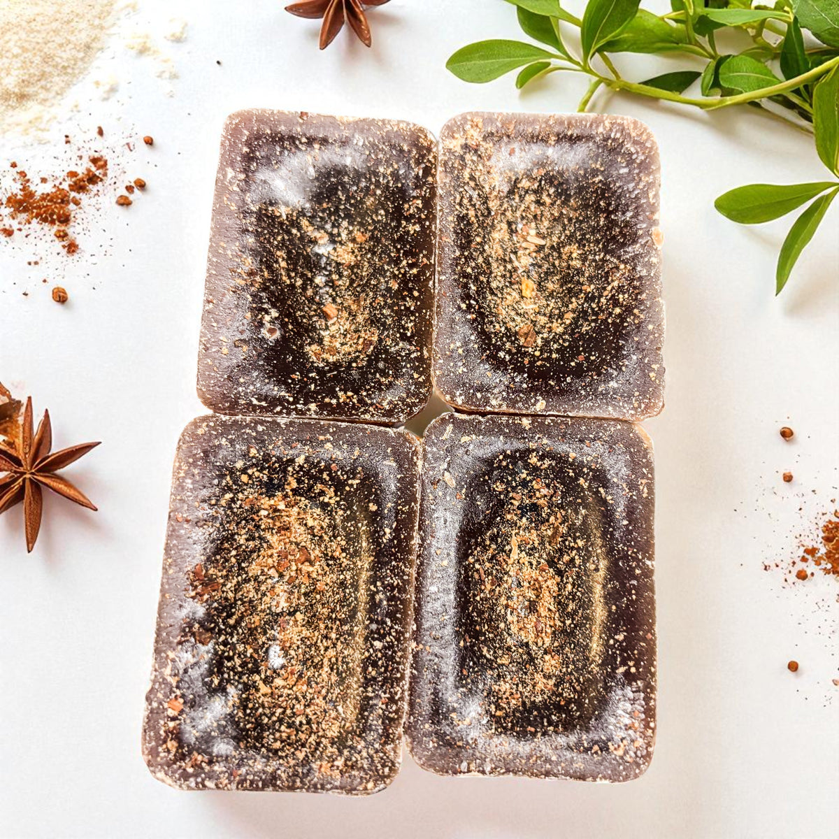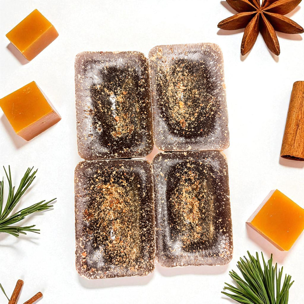 - With our natural line of melts, you can actually see the hand-ground spices that make up our wonderful scents. And while our wax melts may look a little different than traditional melts, the colors come from the spices themselves, not from synthetic dyes. Each melt is coated with spices that are ground by hand to ensure the freshest ingredients into each product!