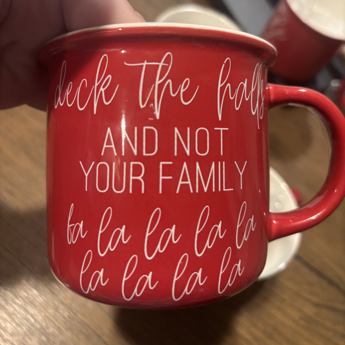 Imperfect Christmas Coffee Mugs. Best part of these, is they are double-sided and 97% of these mugs have imperfections on only one side! Most are VERY MINOR imperfections too. Still can be used and gifted!