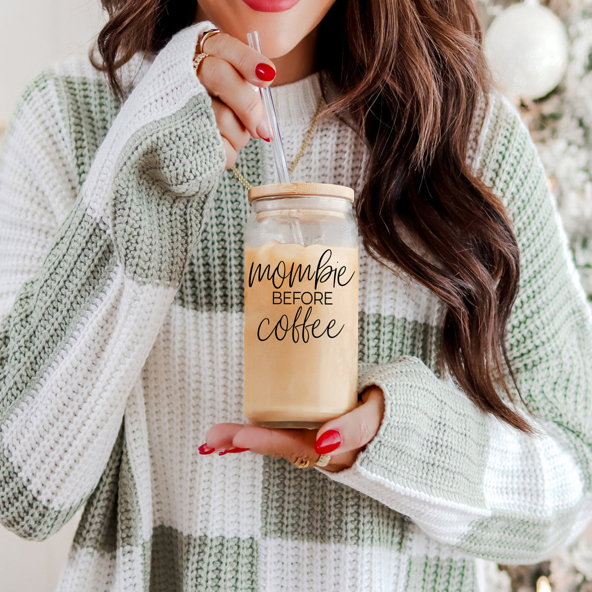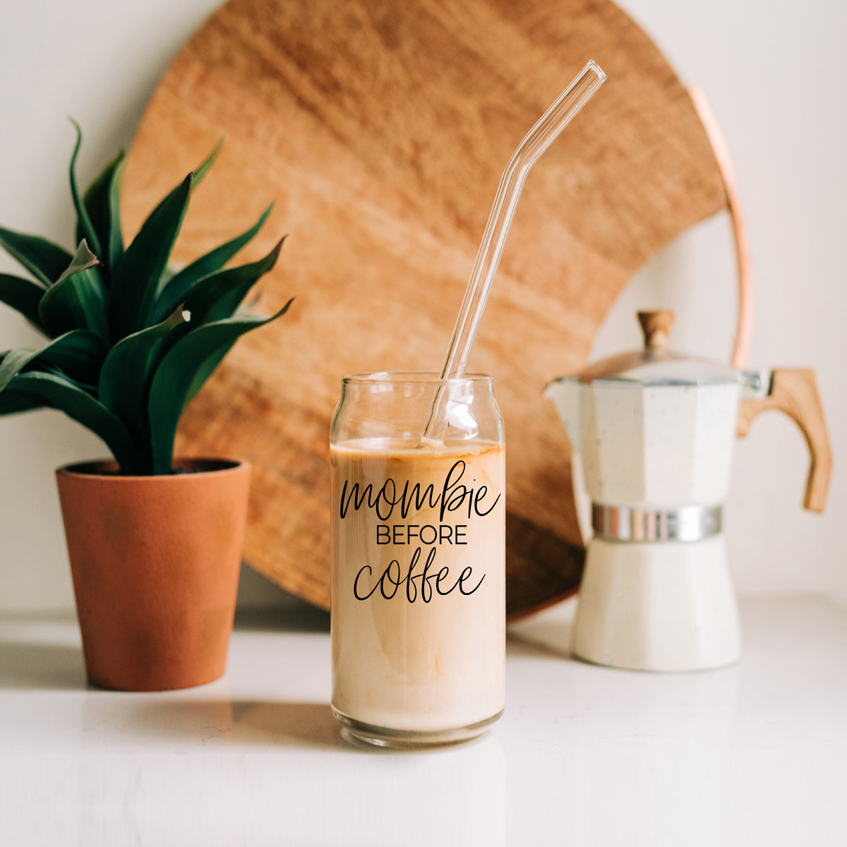 Meet your new morning survival kit - the 20oz 'Mombie Before Coffee' glass tumbler, because sometimes being a mom means being a zombie until that sweet, sweet caffeine kicks in!