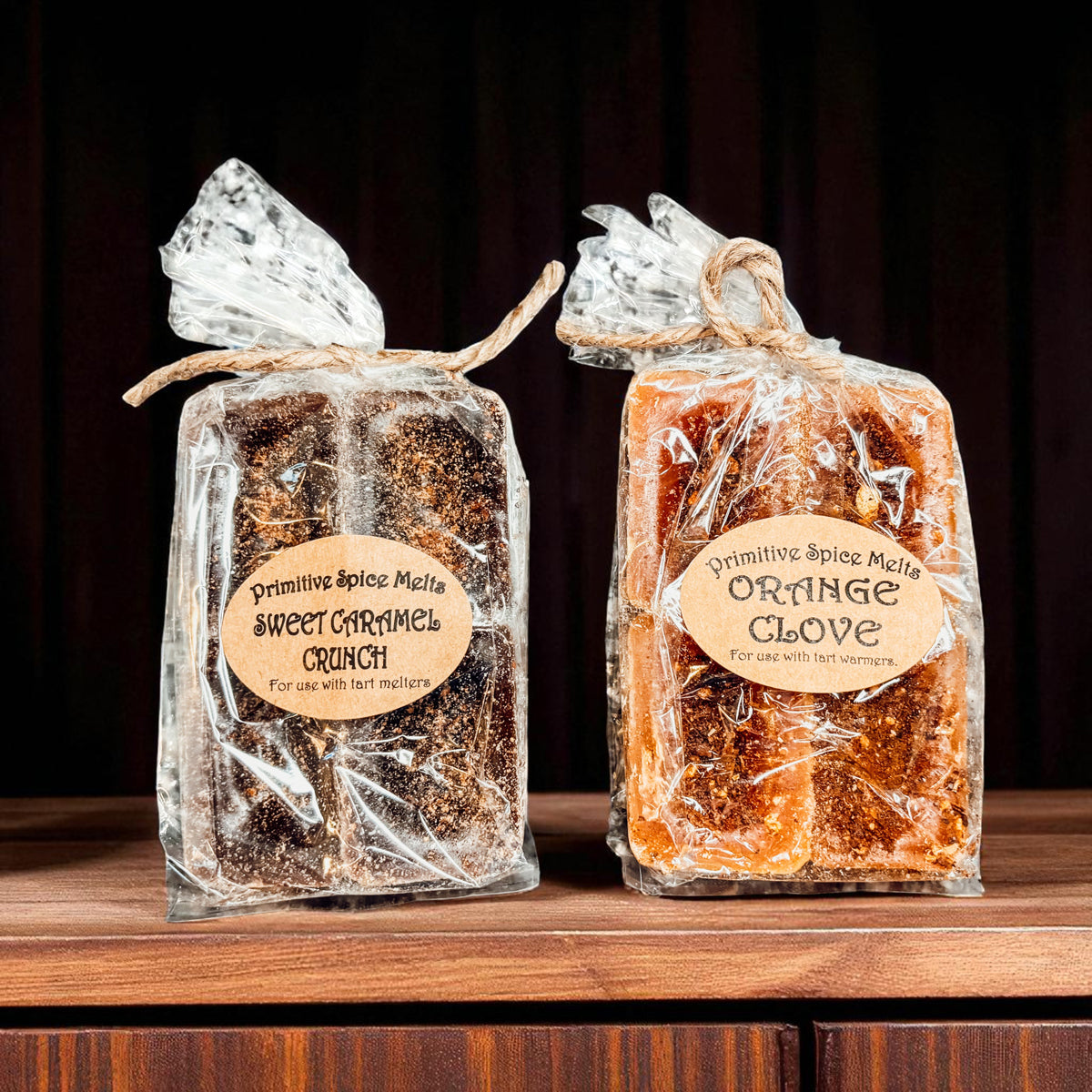 - With our natural line of melts, you can actually see the hand-ground spices that make up our wonderful scents. And while our wax melts may look a little different than traditional melts, the colors come from the spices themselves, not from synthetic dyes. Each melt is coated with spices that are ground by hand to ensure the freshest ingredients into each product!