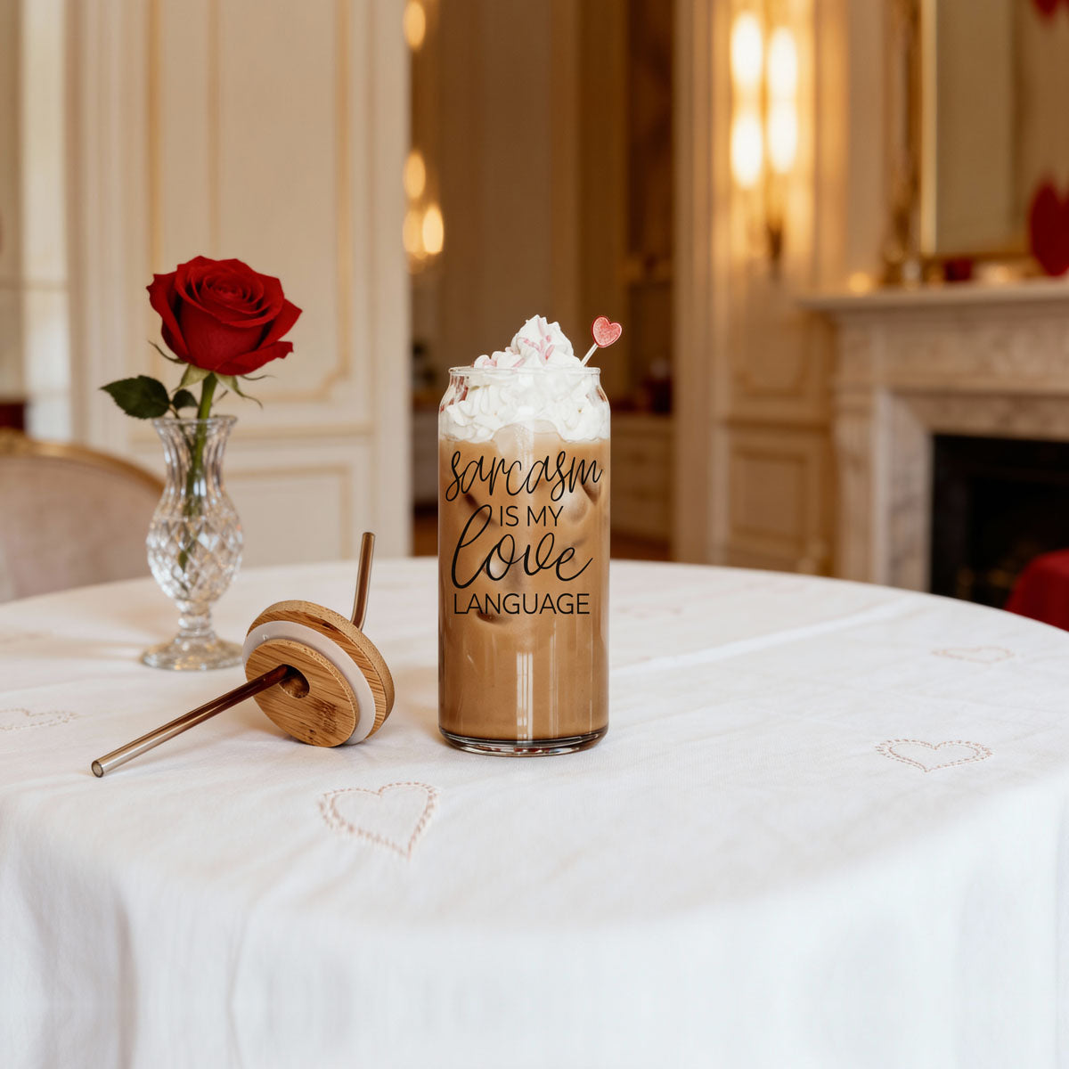 💬 Sarcasm Is My Love Language Glass Cup with Bamboo Lid 💬