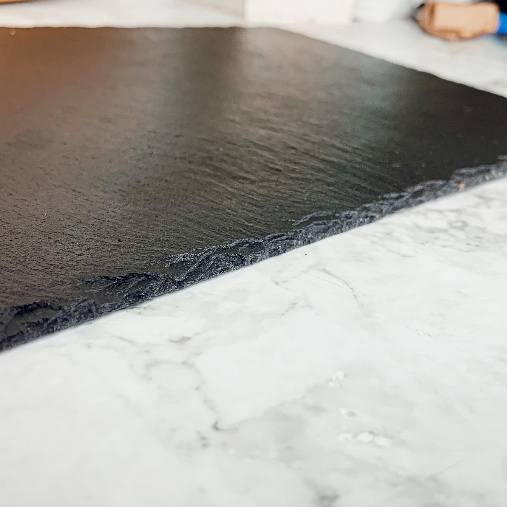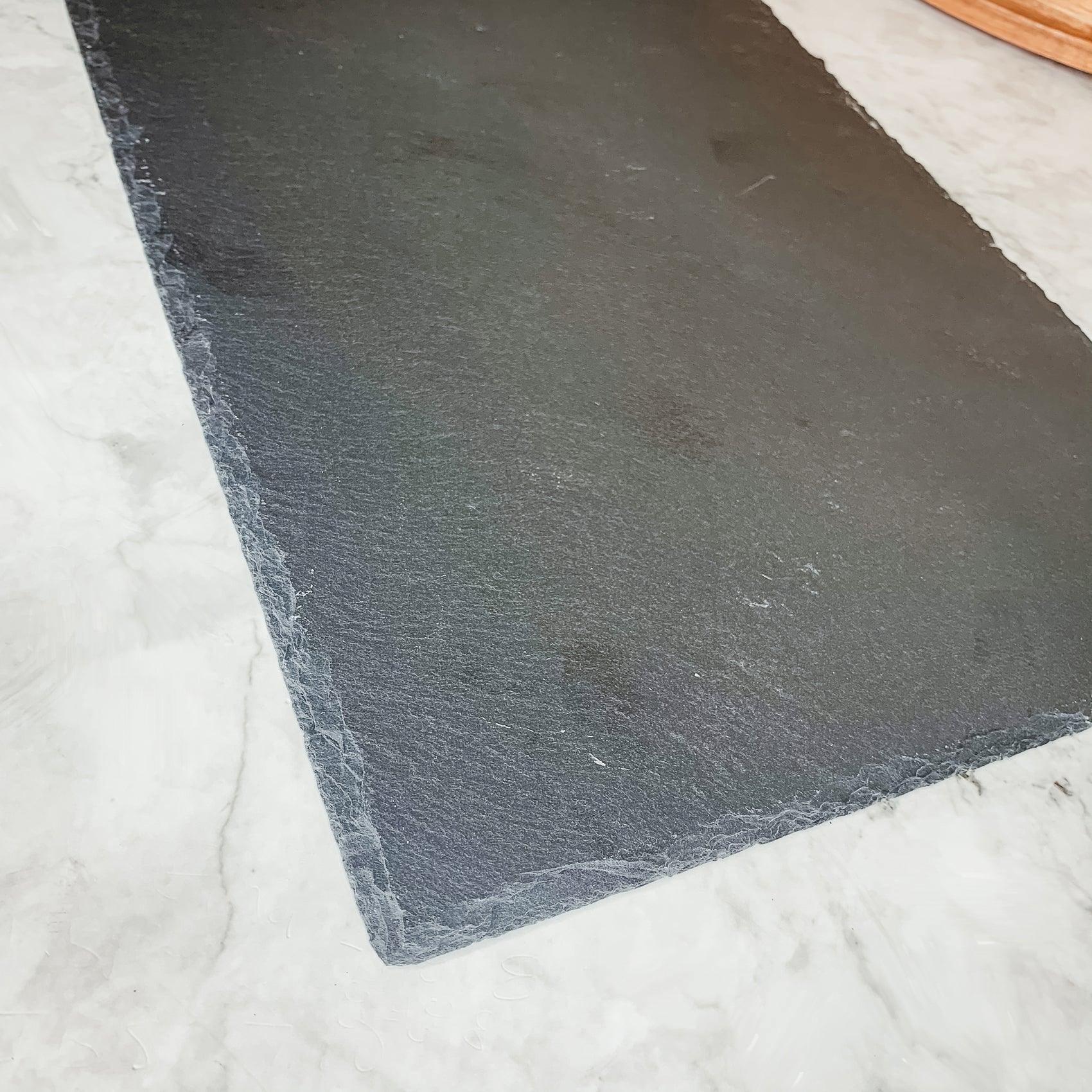 The other look is Food Grade Mineral Oil applied over it. This darkens the slate to black and gives it a more sleek look. We do offer to apply it to your trays for you, at an additional cost or you can buy it and apply yourself HERE.