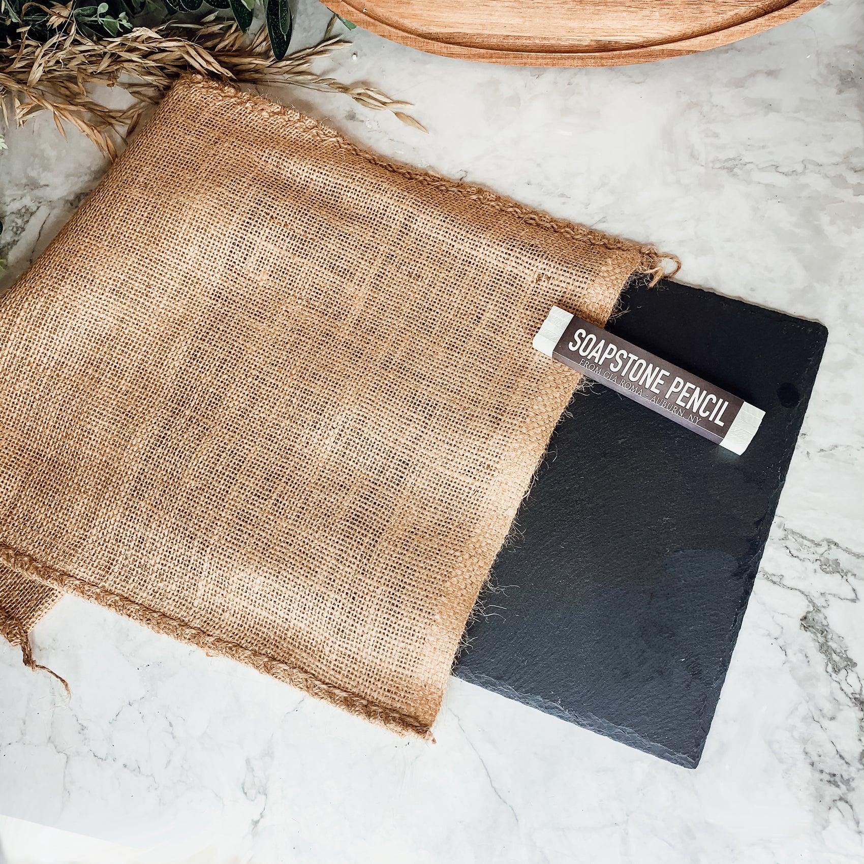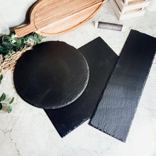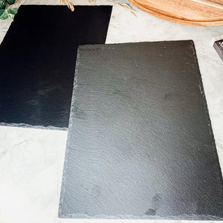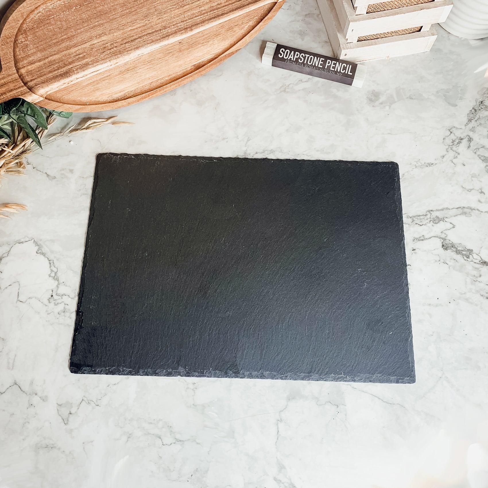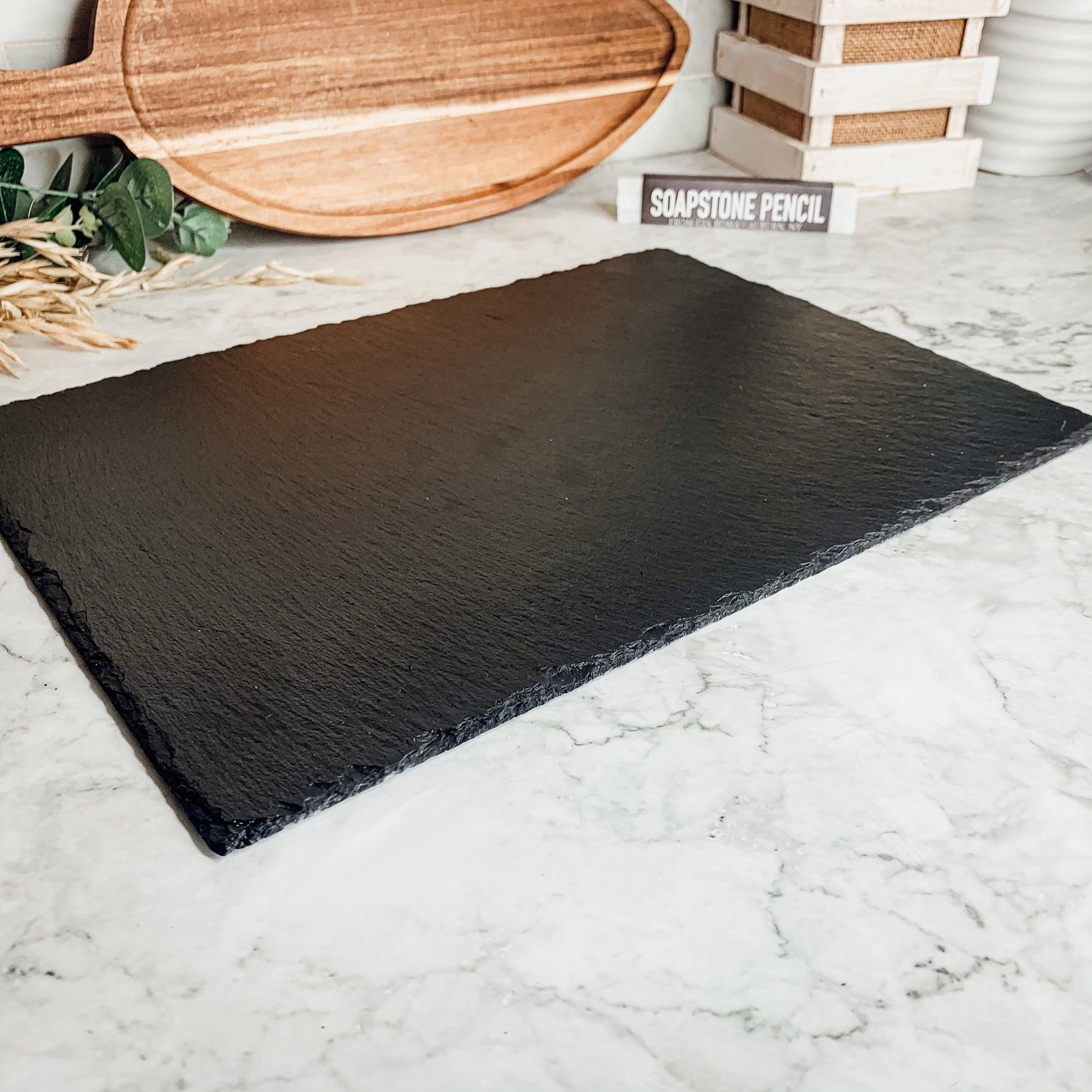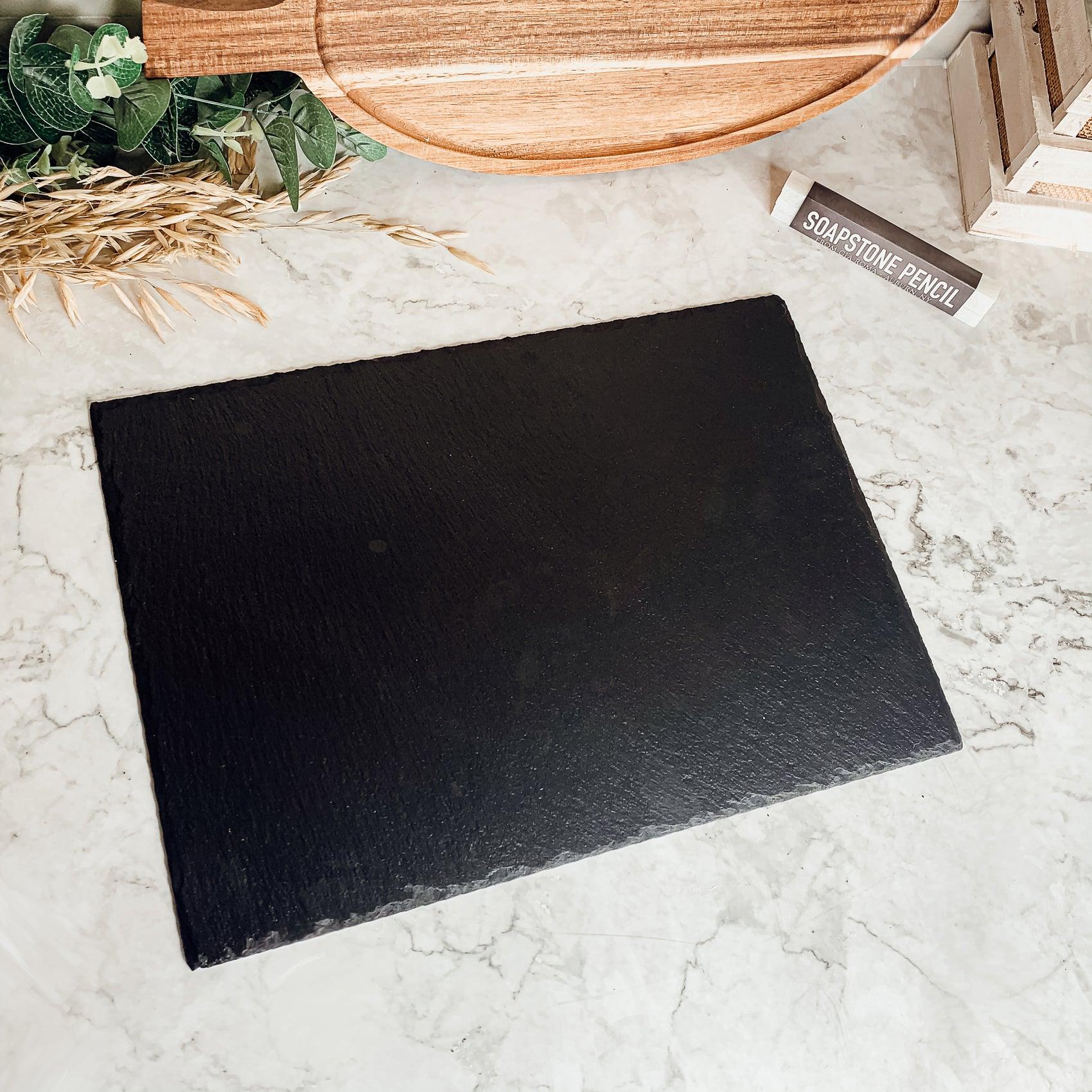 Each has a natural edge - leaving a distinctive natural surface for serving cheeses & hors d'oeurvres. Use chalk or soapstone to write on it whenever you'd like!