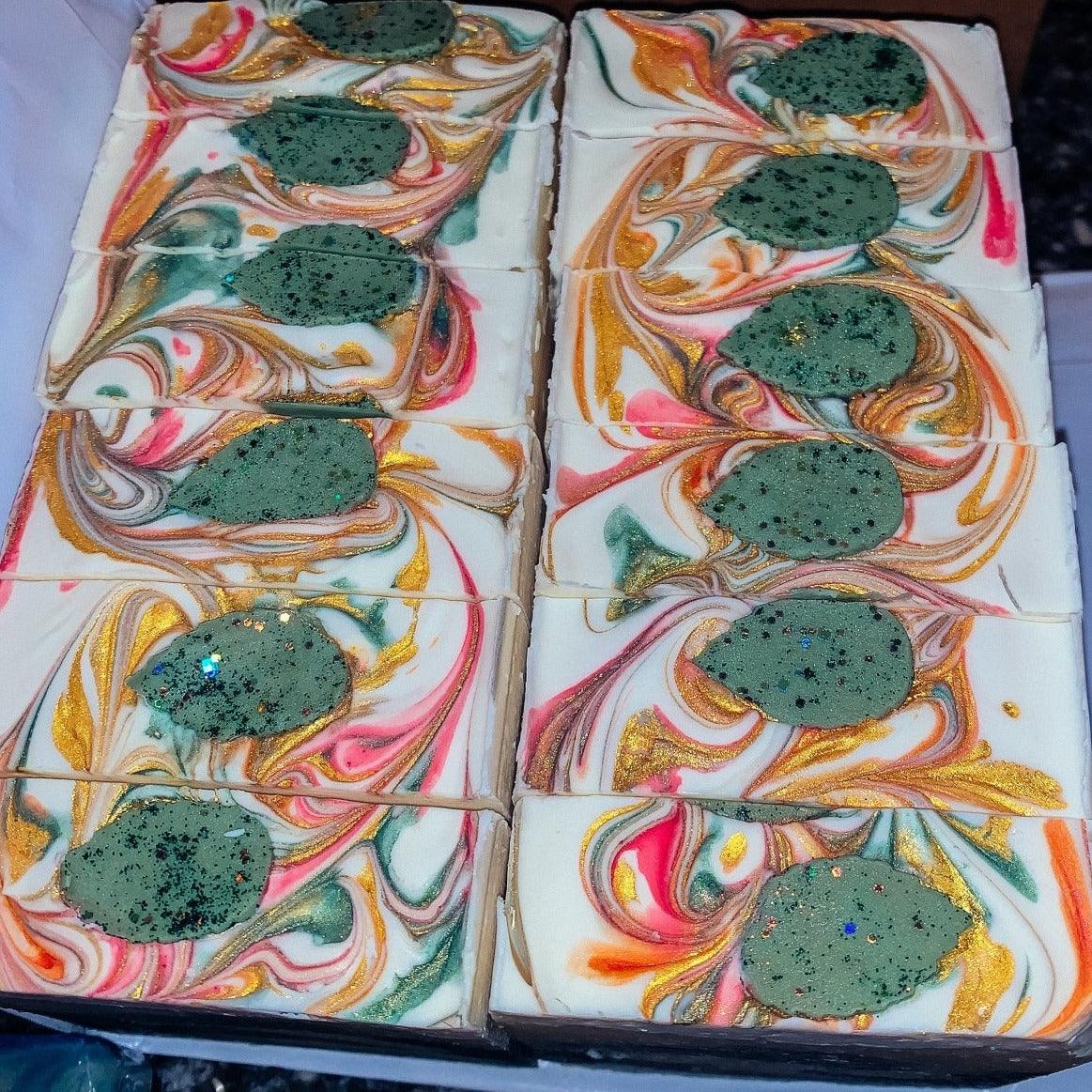 Each bar hand crafted individually. Thus colors and swirls will vary from batch to batch, ensuring each bar is a unique piece of art.