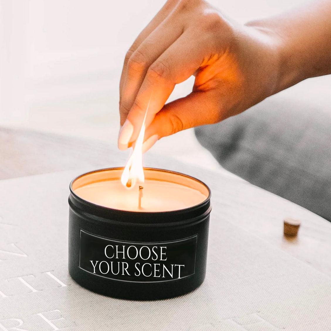 8oz SOY CANDLES - REUSABLE BLACK TINS