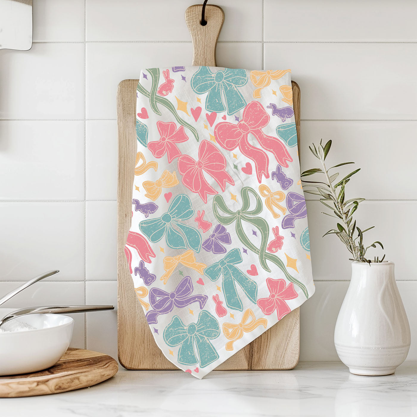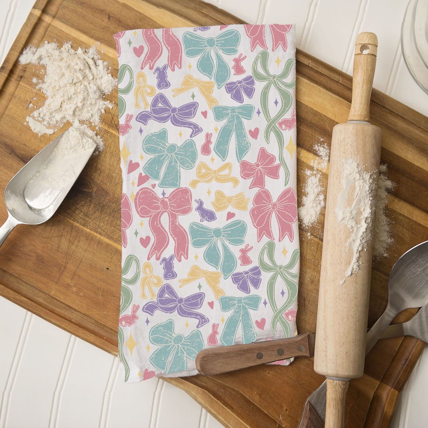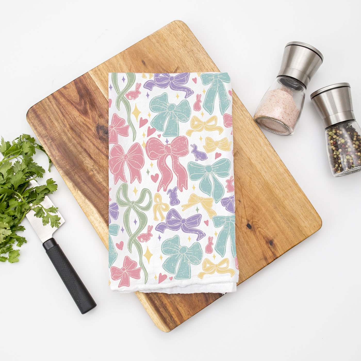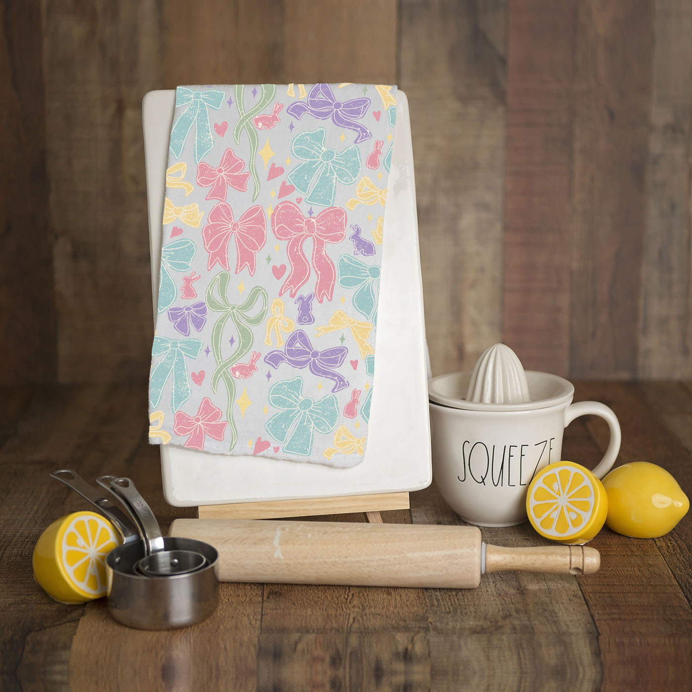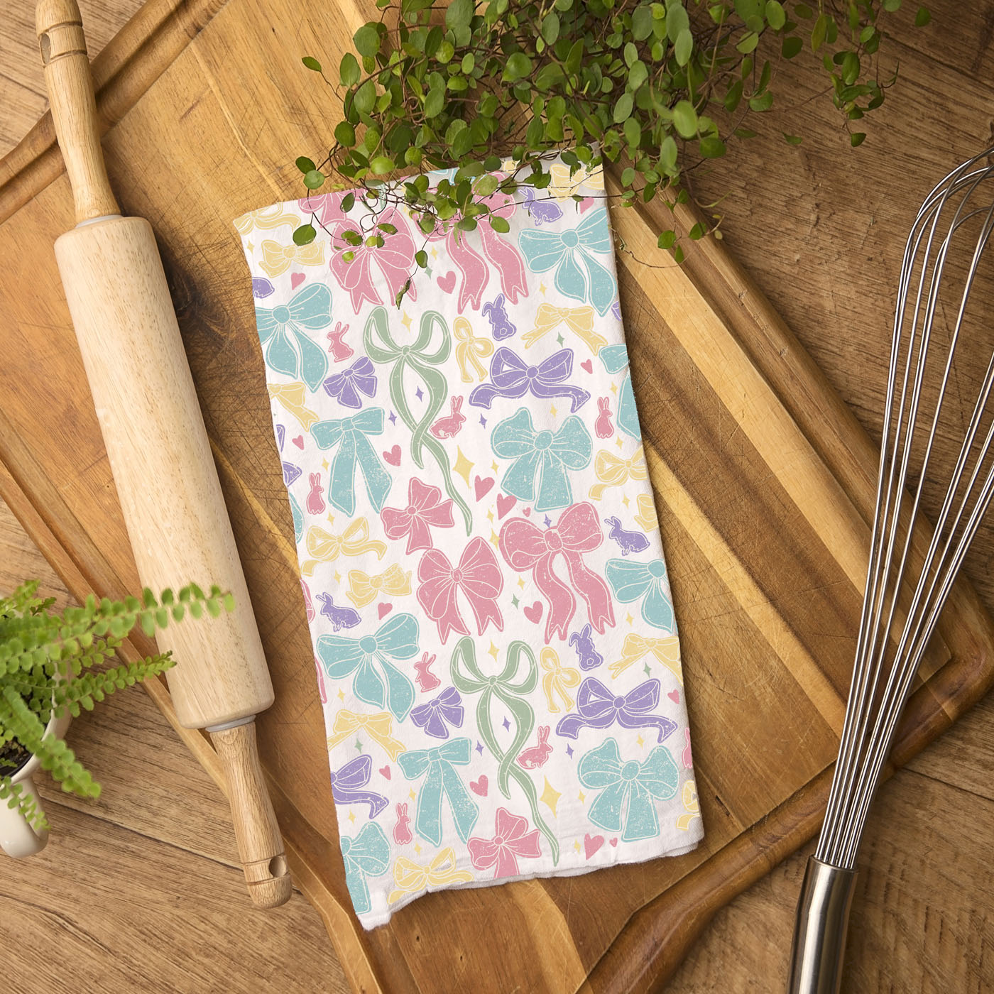 Pastel Bow & Bunny Kitchen Towel - Tied Up in Cuteness (Literally)
