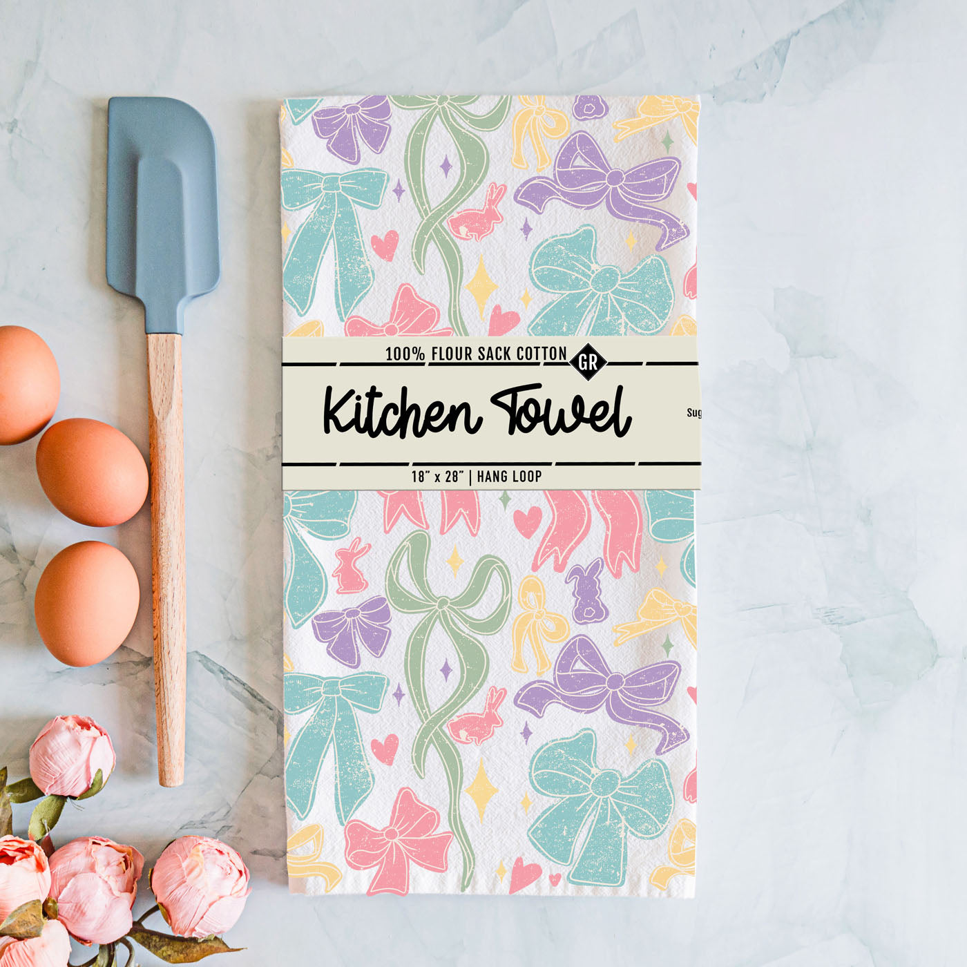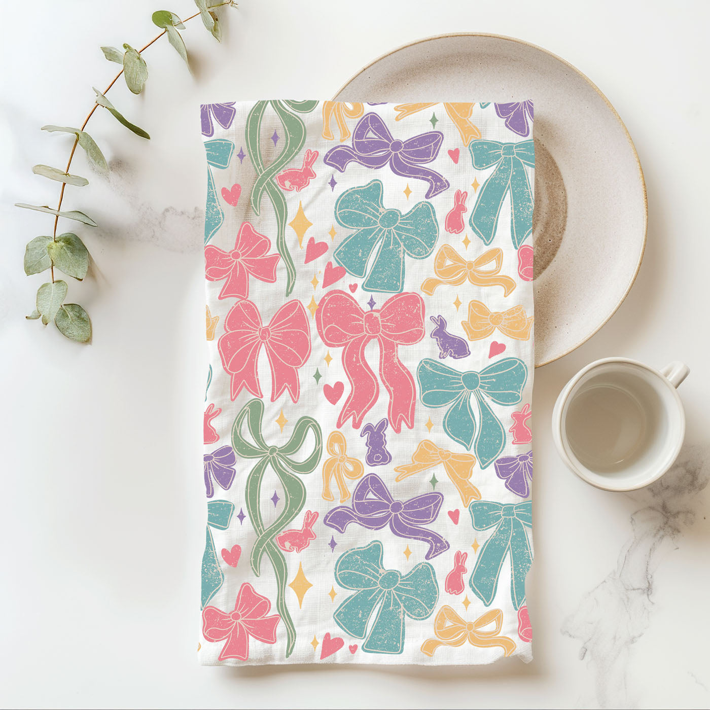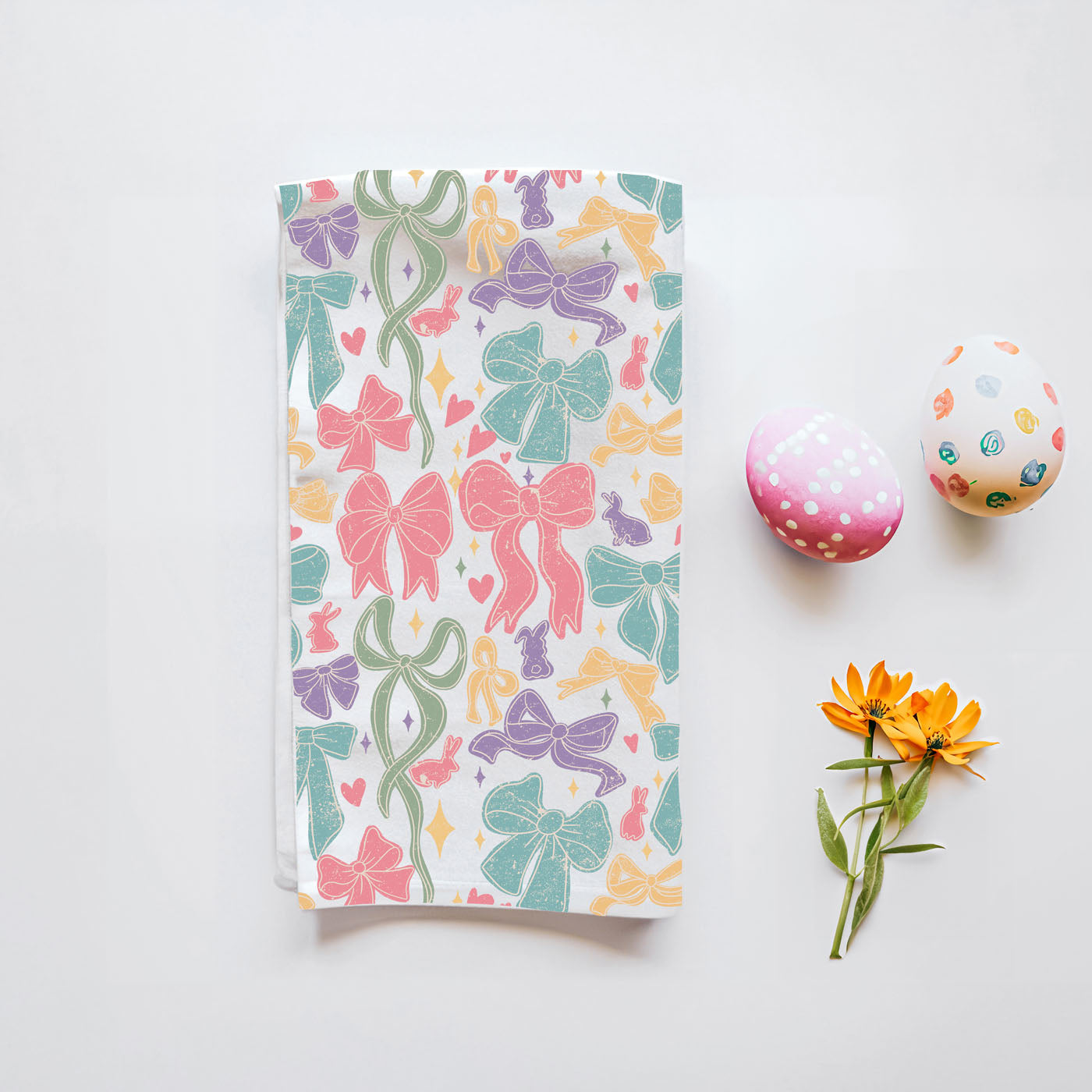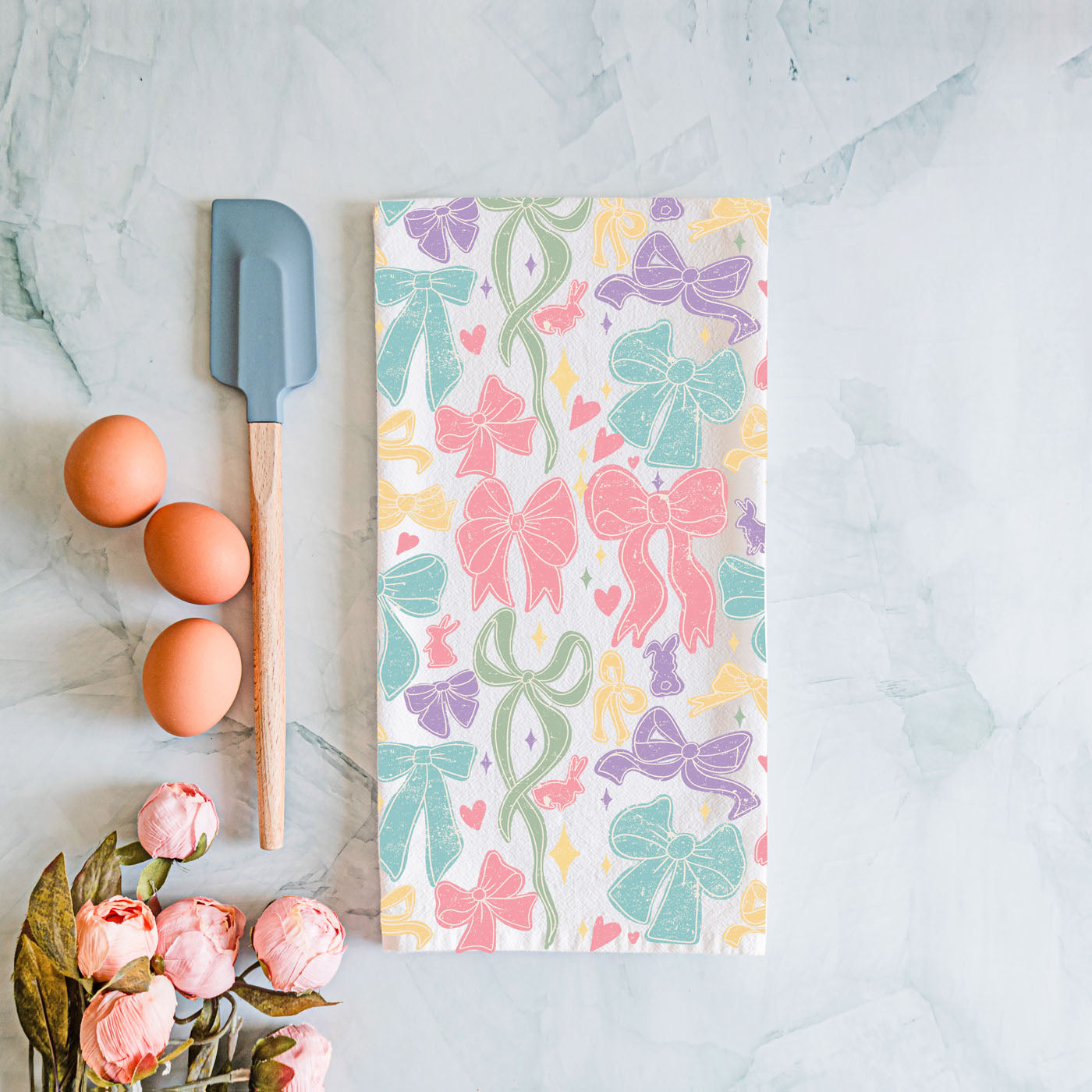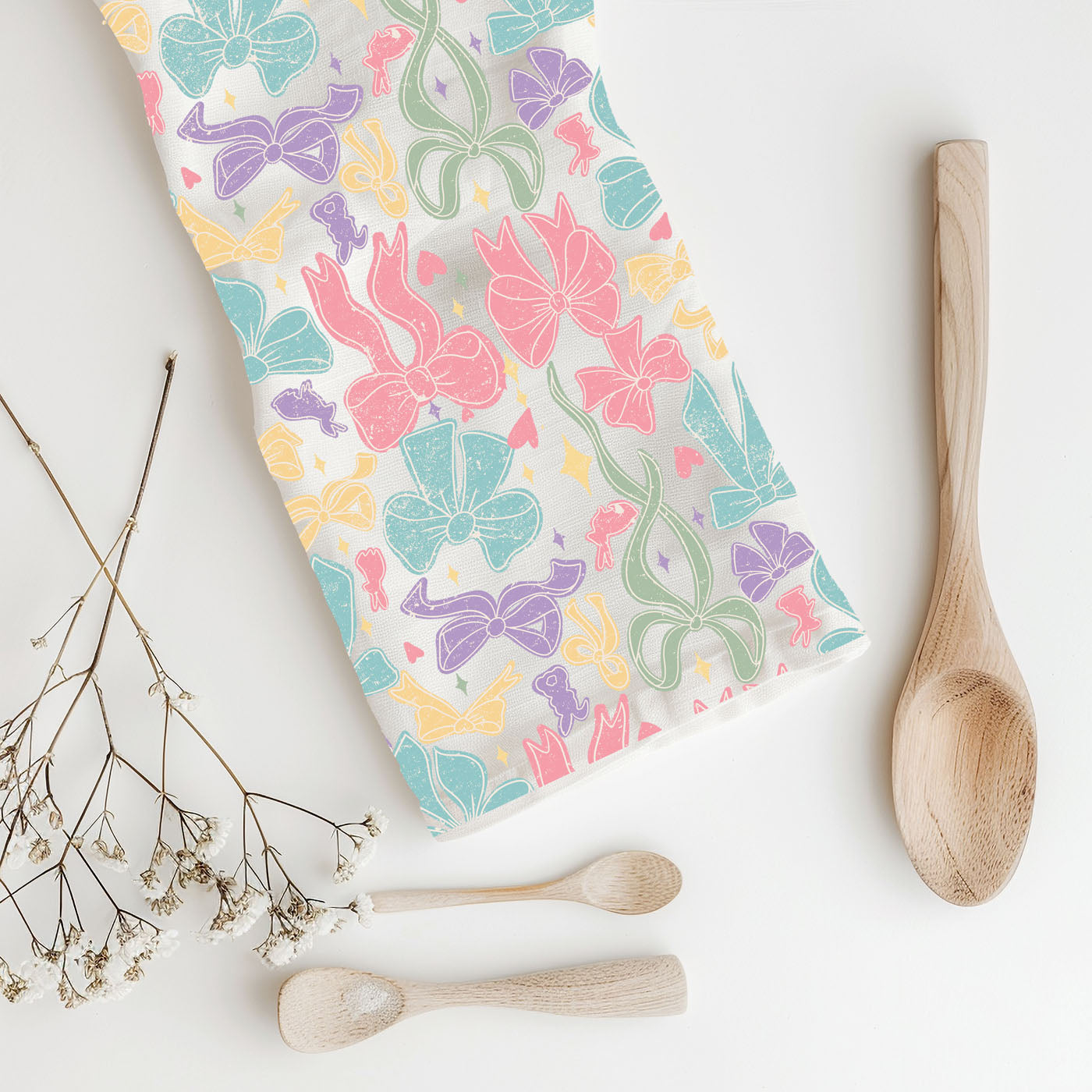 Pastel Bow & Bunny Kitchen Towel - Tied Up in Cuteness (Literally)