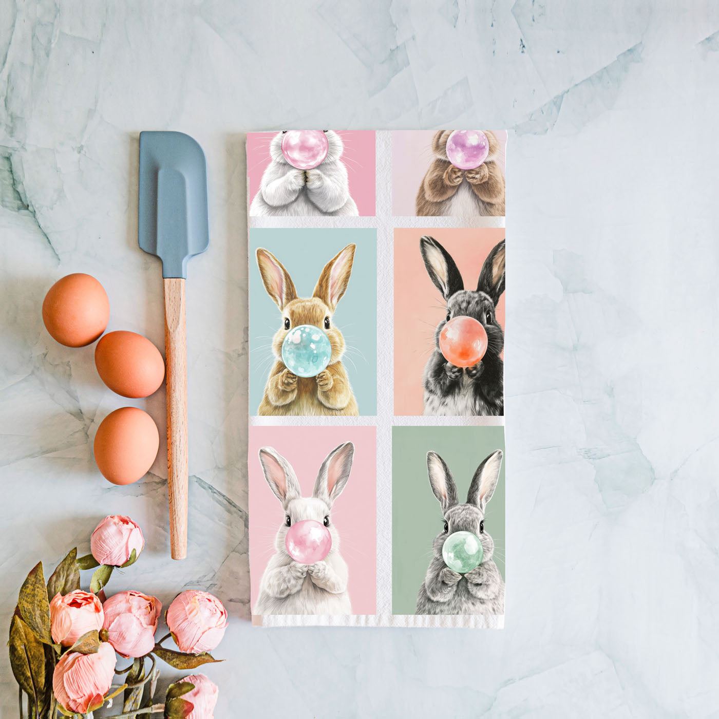 Bunny Bubble Gum Pop Art Kitchen Towel - When Andy Warhol Meets Easter