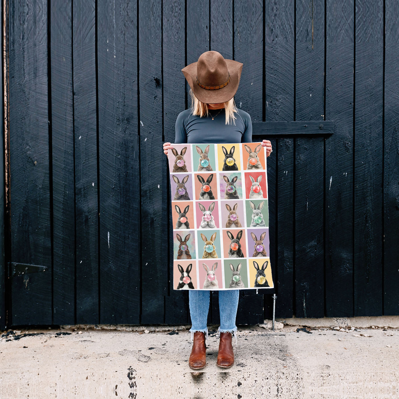 WAIT. STOP. Is this... is this BUNNY POP ART?! Because I just GASPED so loud my neighbor probably heard it. This isn't just a towel—this is a GALLERY PIECE. This is what would happen if Andy Warhol said "you know what? Bunnies. Bunnies blowing bubble gum. That's ART." And he would be RIGHT.