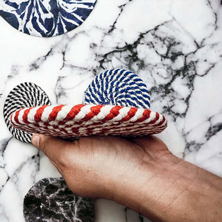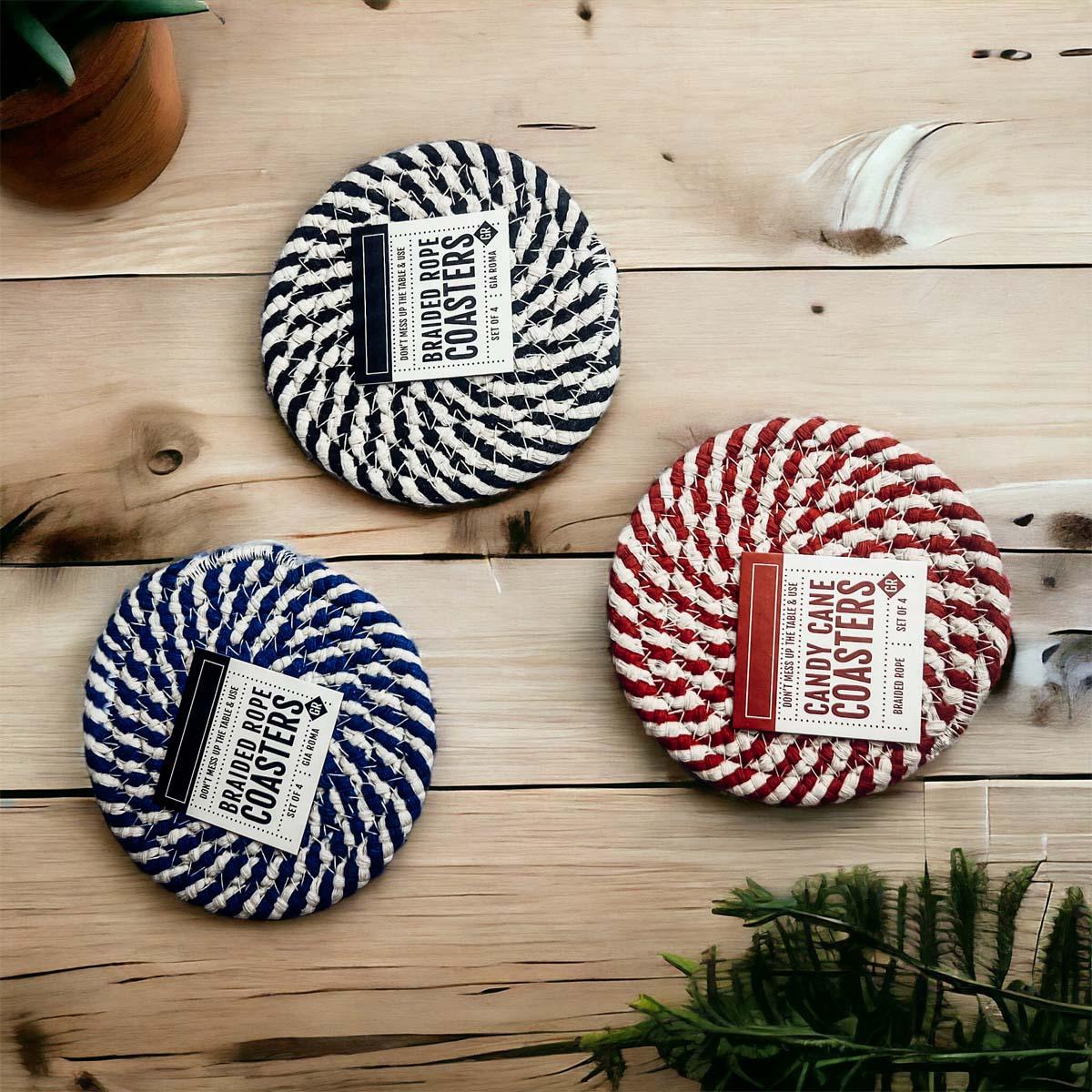 Meet your new table's best friends: 4 gorgeous black and white braided rope coasters that are basically the tuxedos of the coaster world. Classy, timeless, and ready to catch whatever chaos you're drinking today.