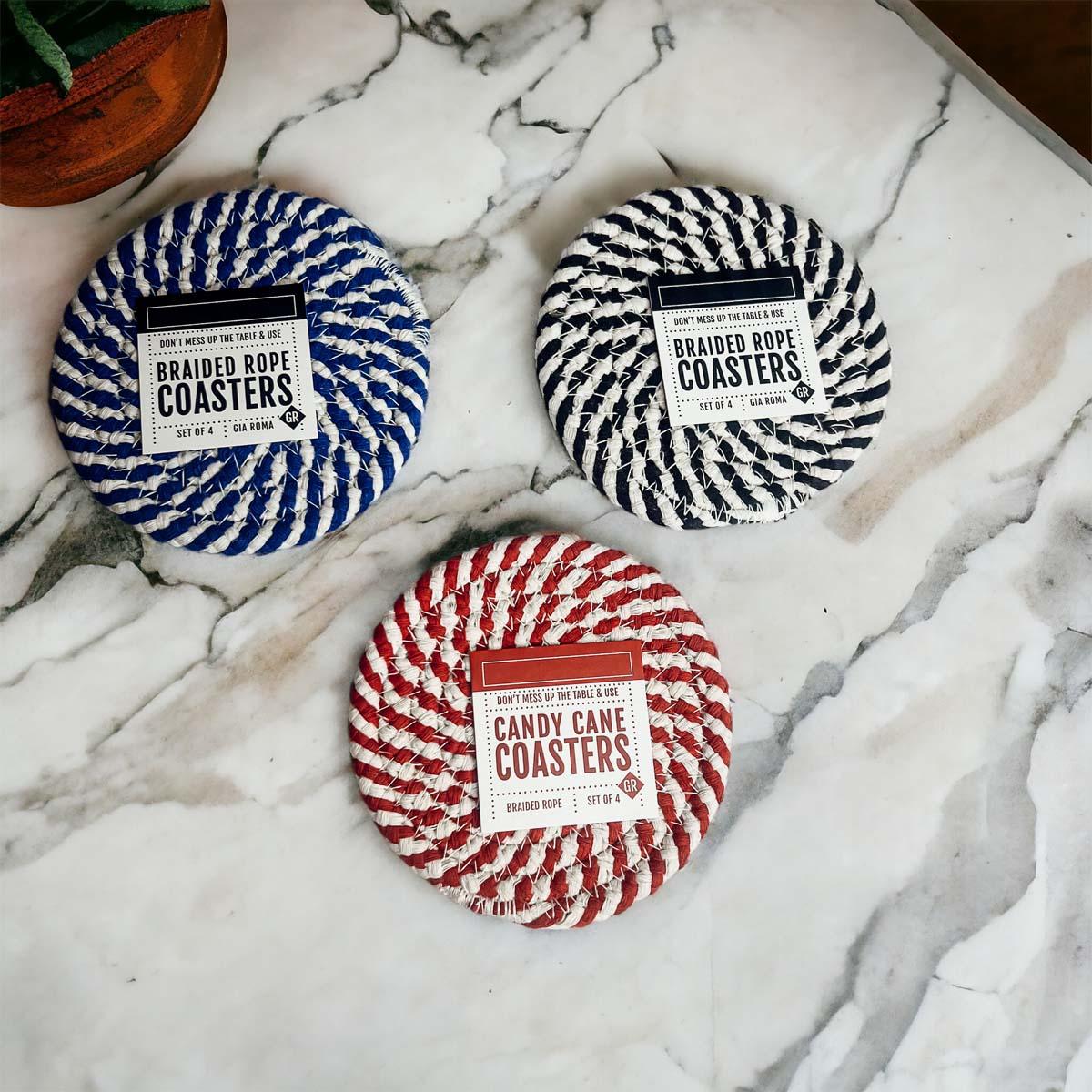 Don't Mess Up The Table & Vibe: Black & White Braided Rope Coasters (Set of 4)