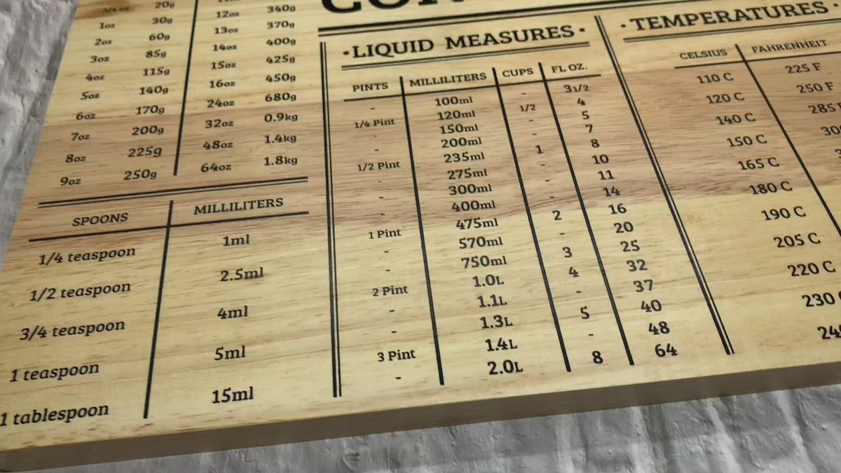 Use as decor & a measurement reference on one side and then flip it over, to the non text side and use it for a gorgeous cutting board, cheese platter, serving board, appetizer tray. Whatever you need!