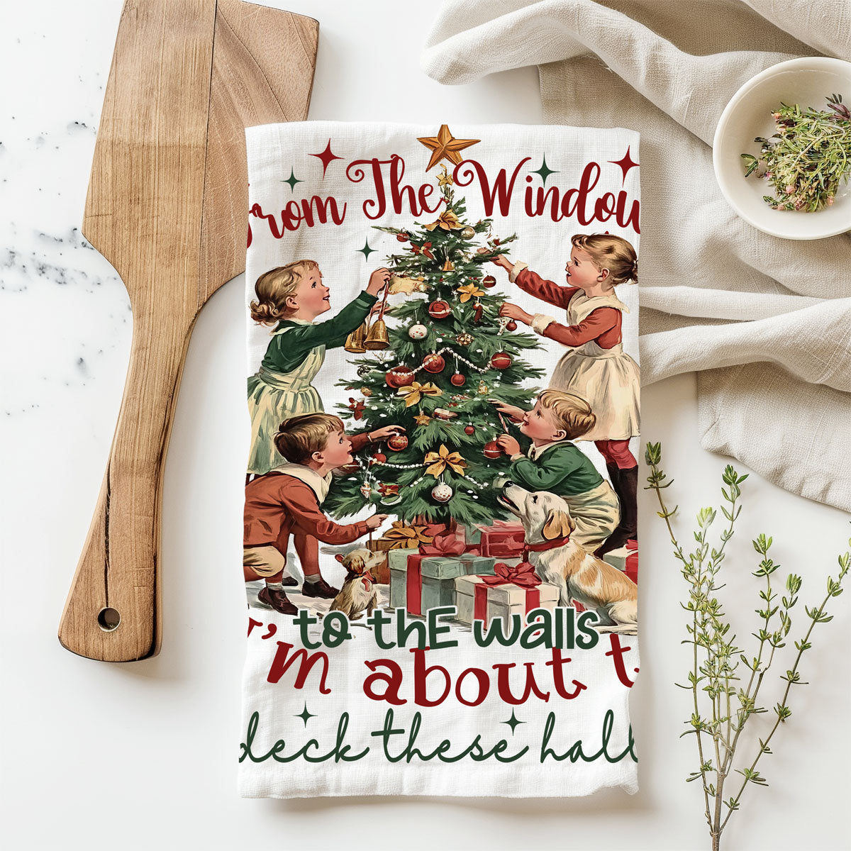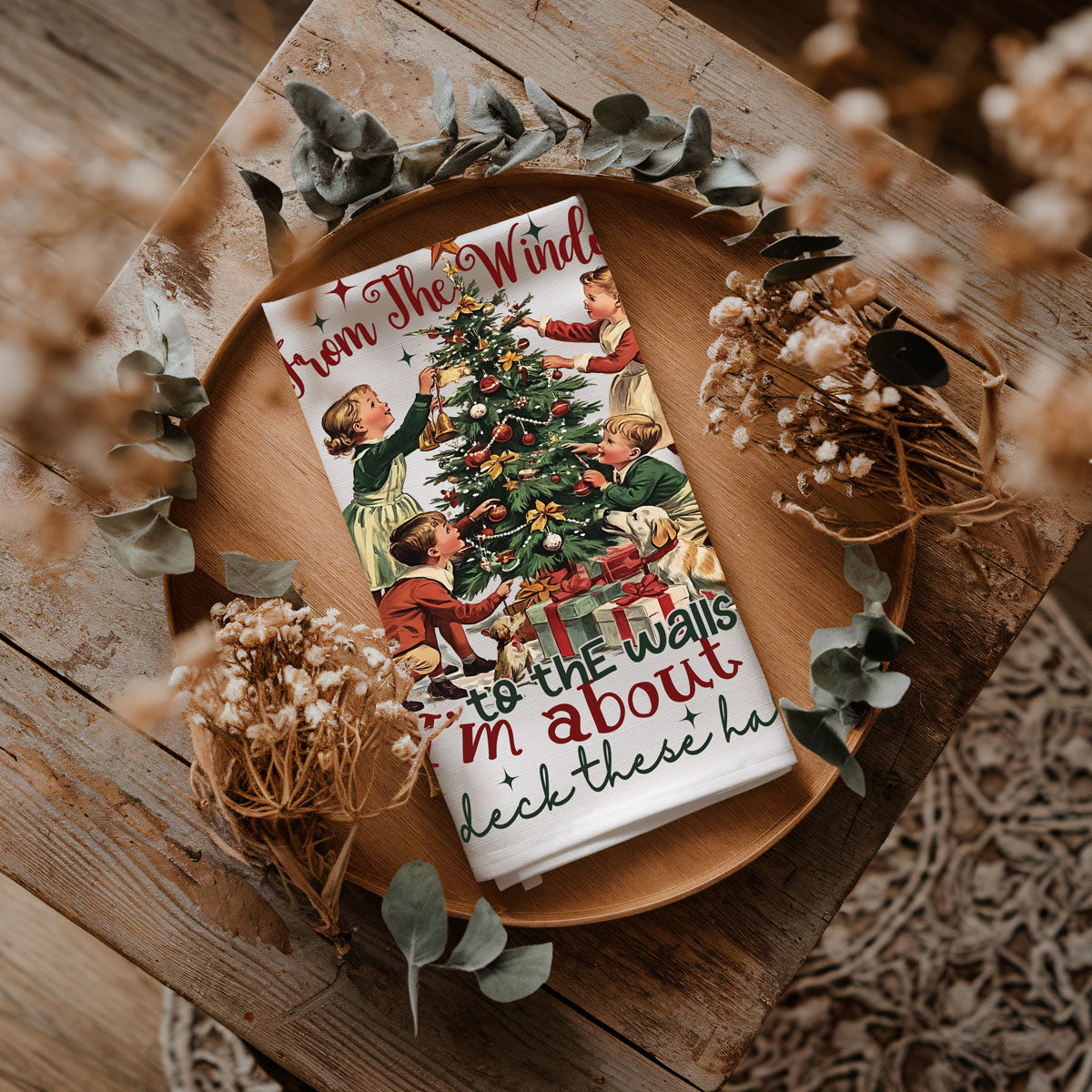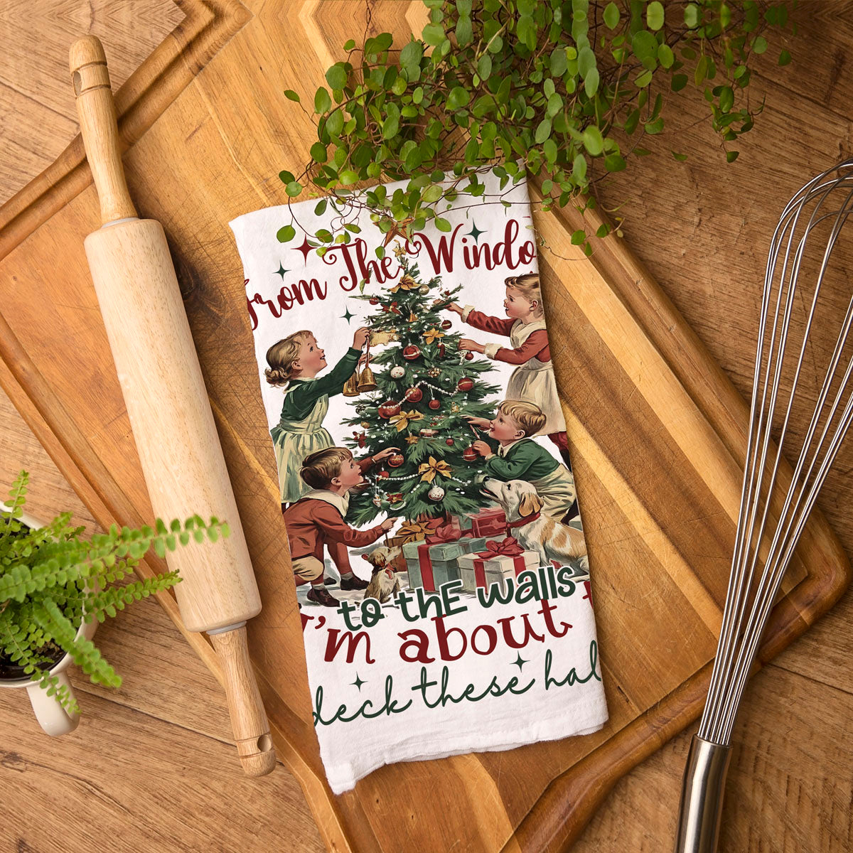 "From The Windows To The Walls" Vintage Christmas Kitchen Towel - Because Deck The Halls Needs a Vintage Chaos Edition🎄✨