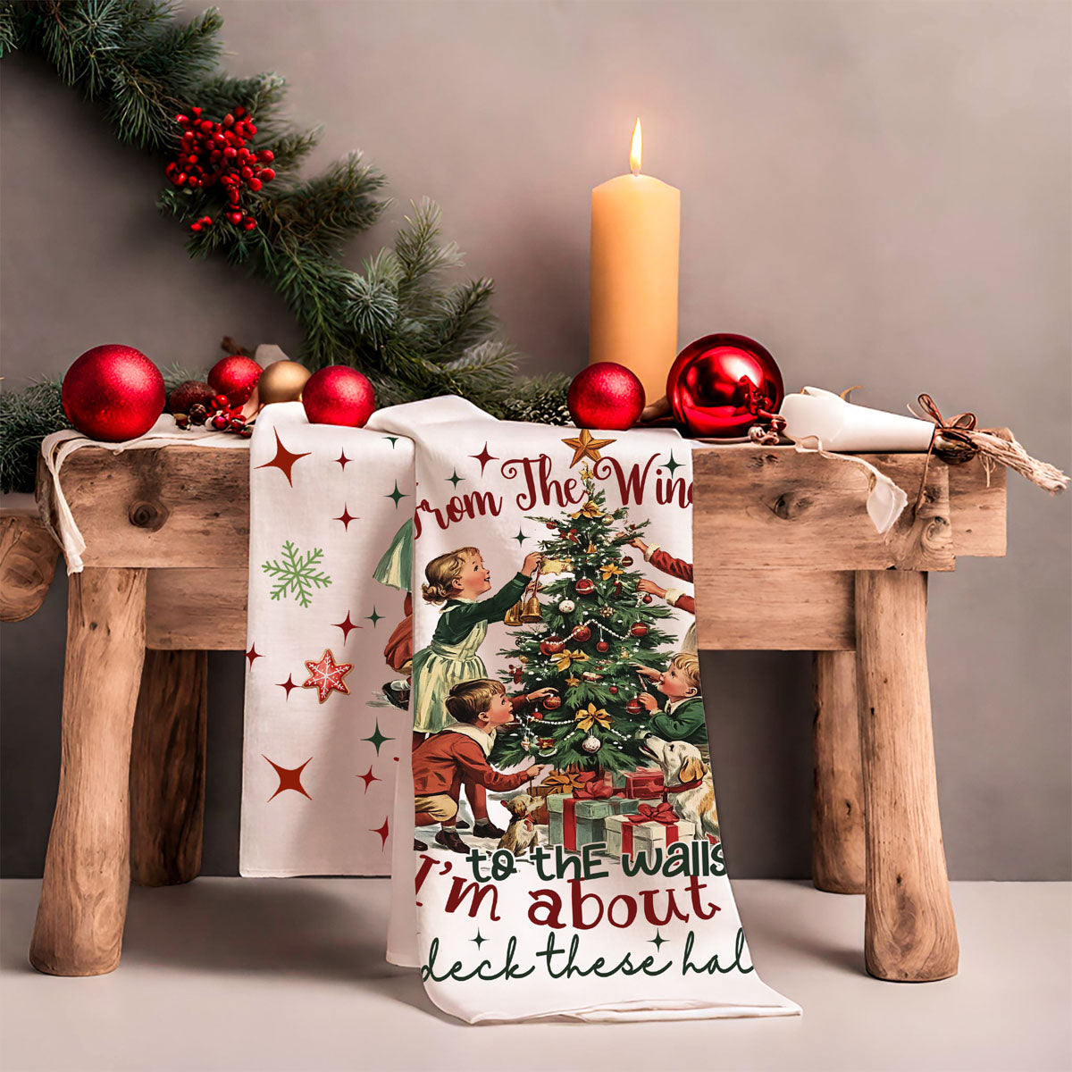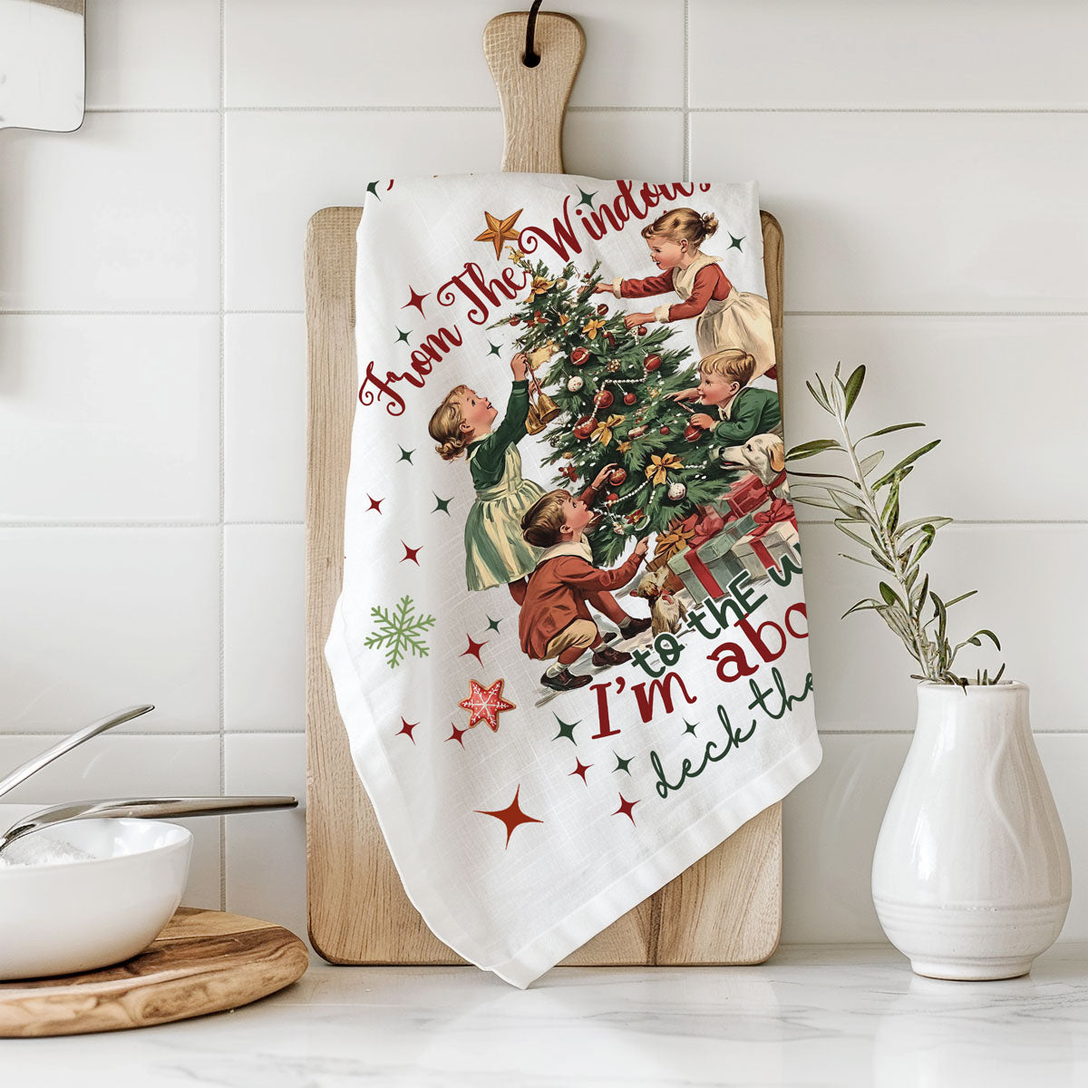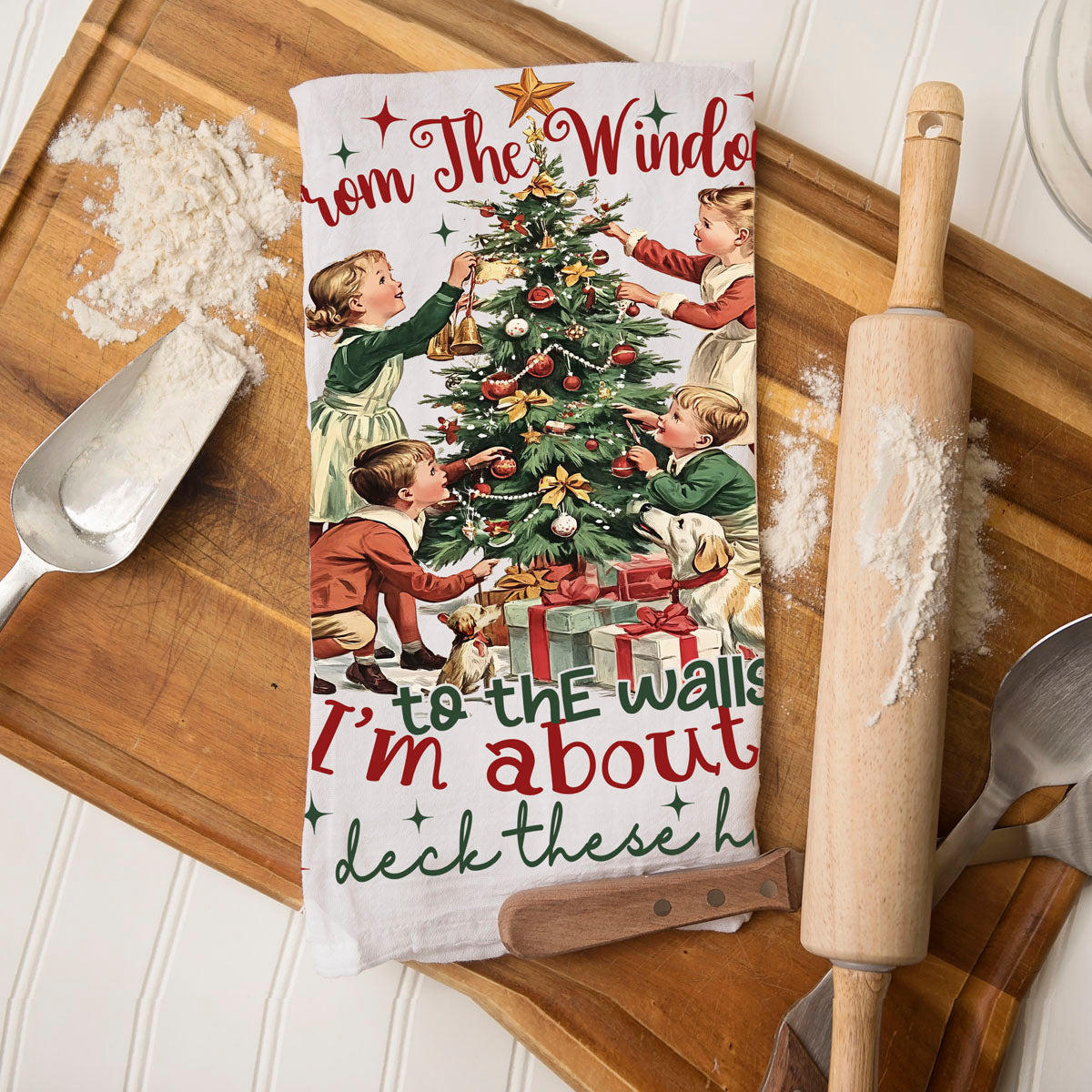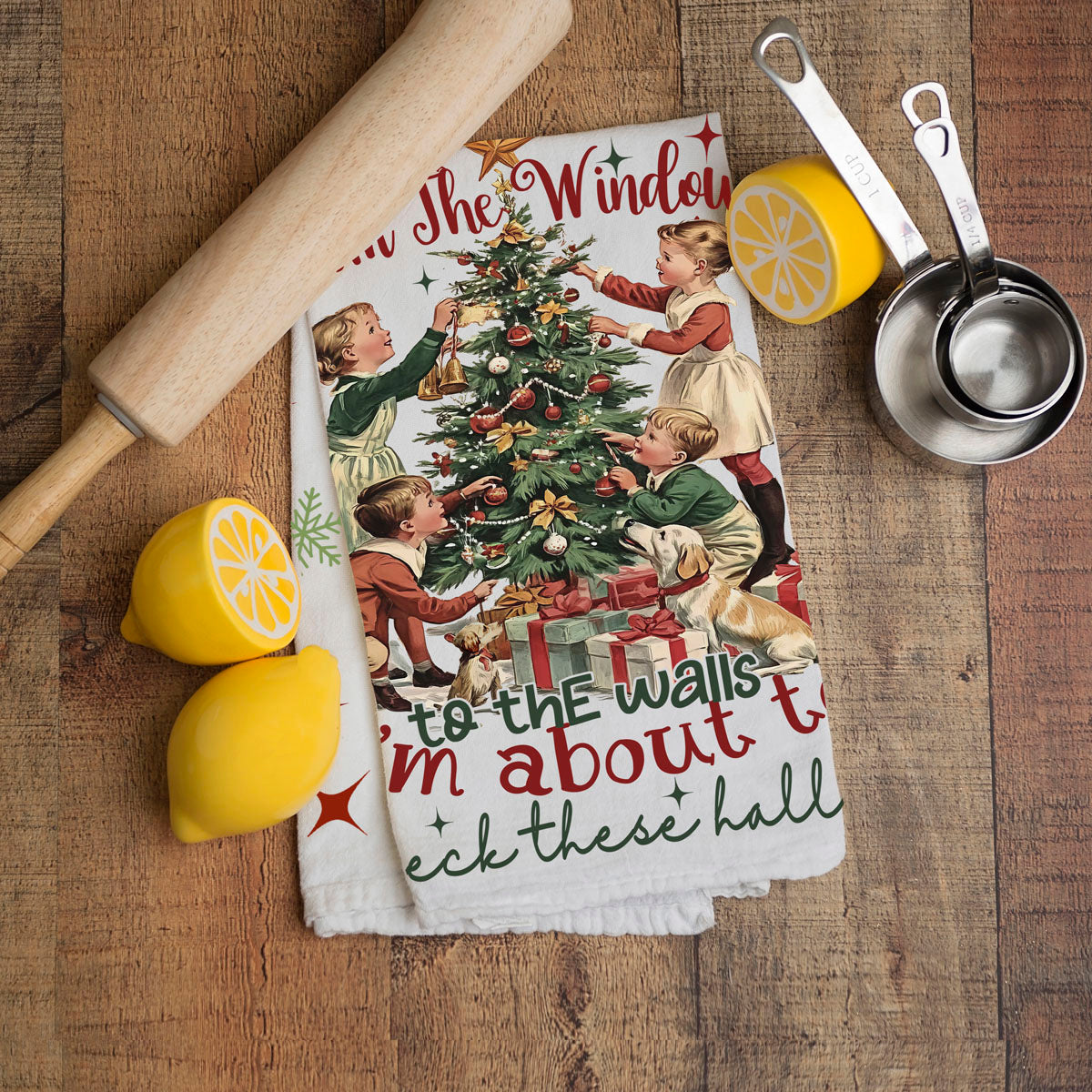 "From The Windows To The Walls" Vintage Christmas Kitchen Towel - Because Deck The Halls Needs a Vintage Chaos Edition🎄✨