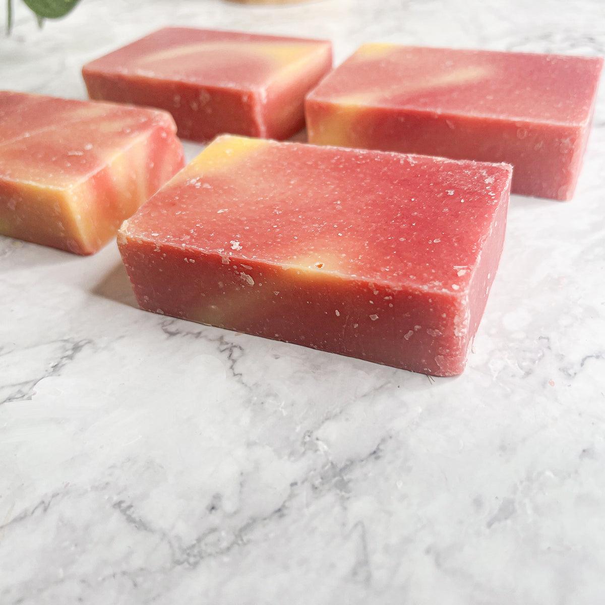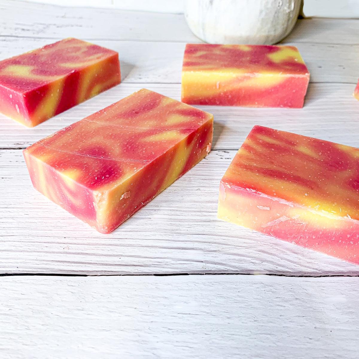 Fruity Tooty sums this soap up perfectly. With a blend of Banana, grapefruit, kiwi, and strawberries it's a fruit explosion!