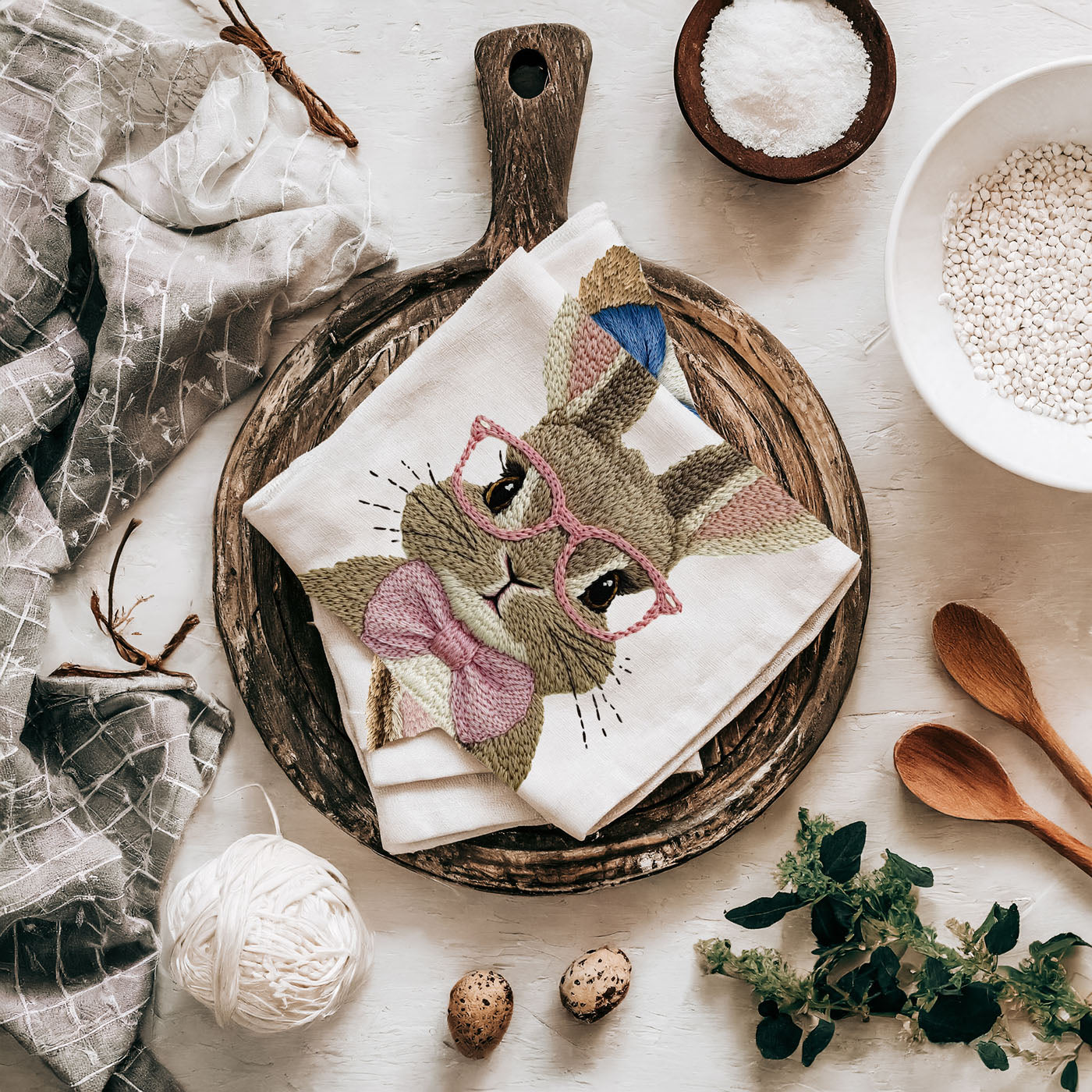 3D Embroidered Bunny Kitchen Towel - Texture You Can Feel, Cuteness You Can't Resist
