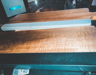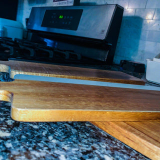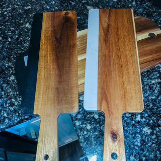 2 Acacia and Marble Serving Boards left and both have imperfections