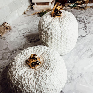 These gorgeous pumpkins will blend in anywhere and the accented gold stem, gives it that touch of chic adored by many.