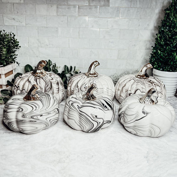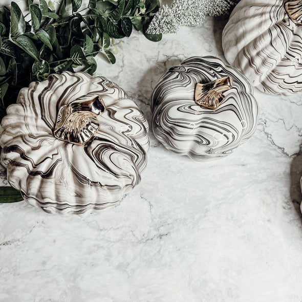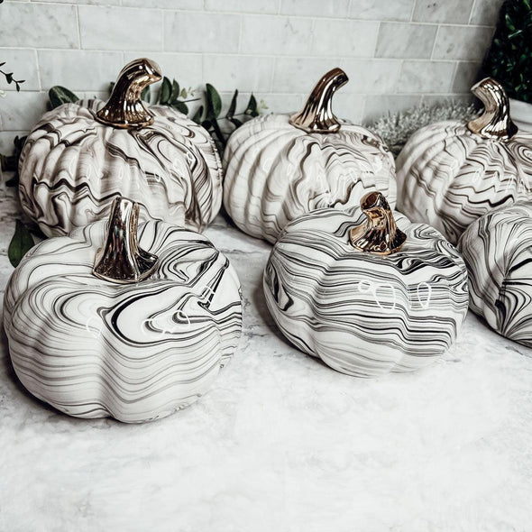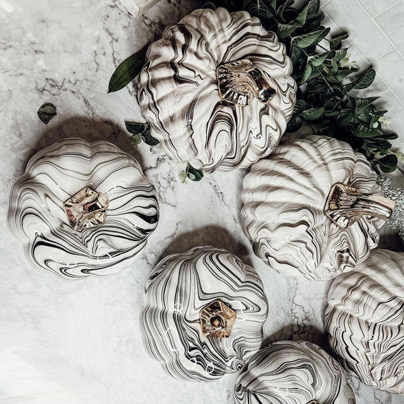Modernize your Halloween Decor this year with these luxury, high end GORGEOUS pumpkins. As each pumpkin is made by hand, each design will slightly differ and no 2 pumpkins will be identical!