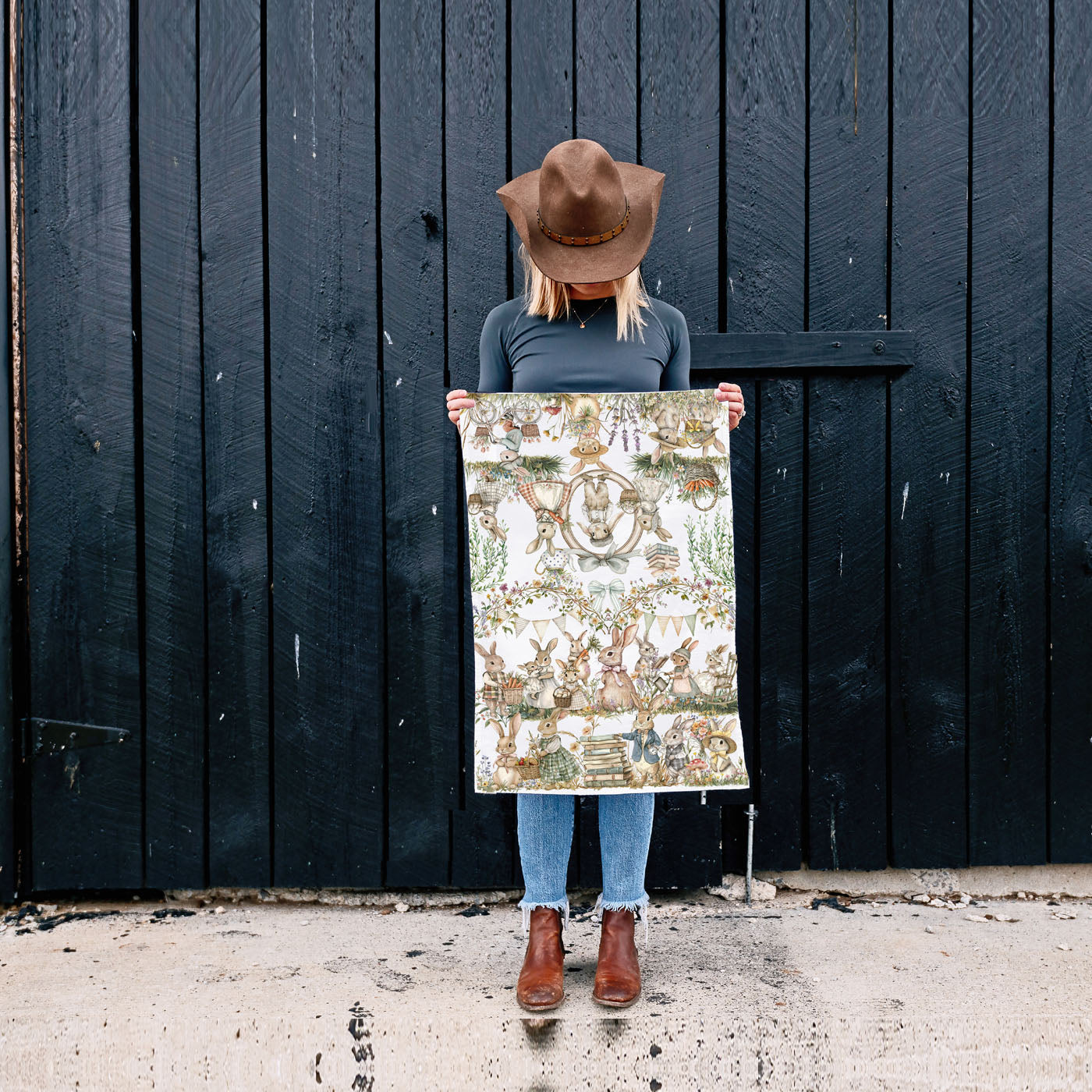 Introducing the kitchen towel that belongs in a museum (but also in your kitchen). Our Peter Rabbit Vintage Storybook Kitchen Towel features exquisitely detailed watercolor bunnies dressed in Victorian-era clothing, surrounded by botanical gardens, vintage books, and charming countryside details. It's giving Beatrix Potter. It's giving English countryside. It's giving "my kitchen is a storybook."