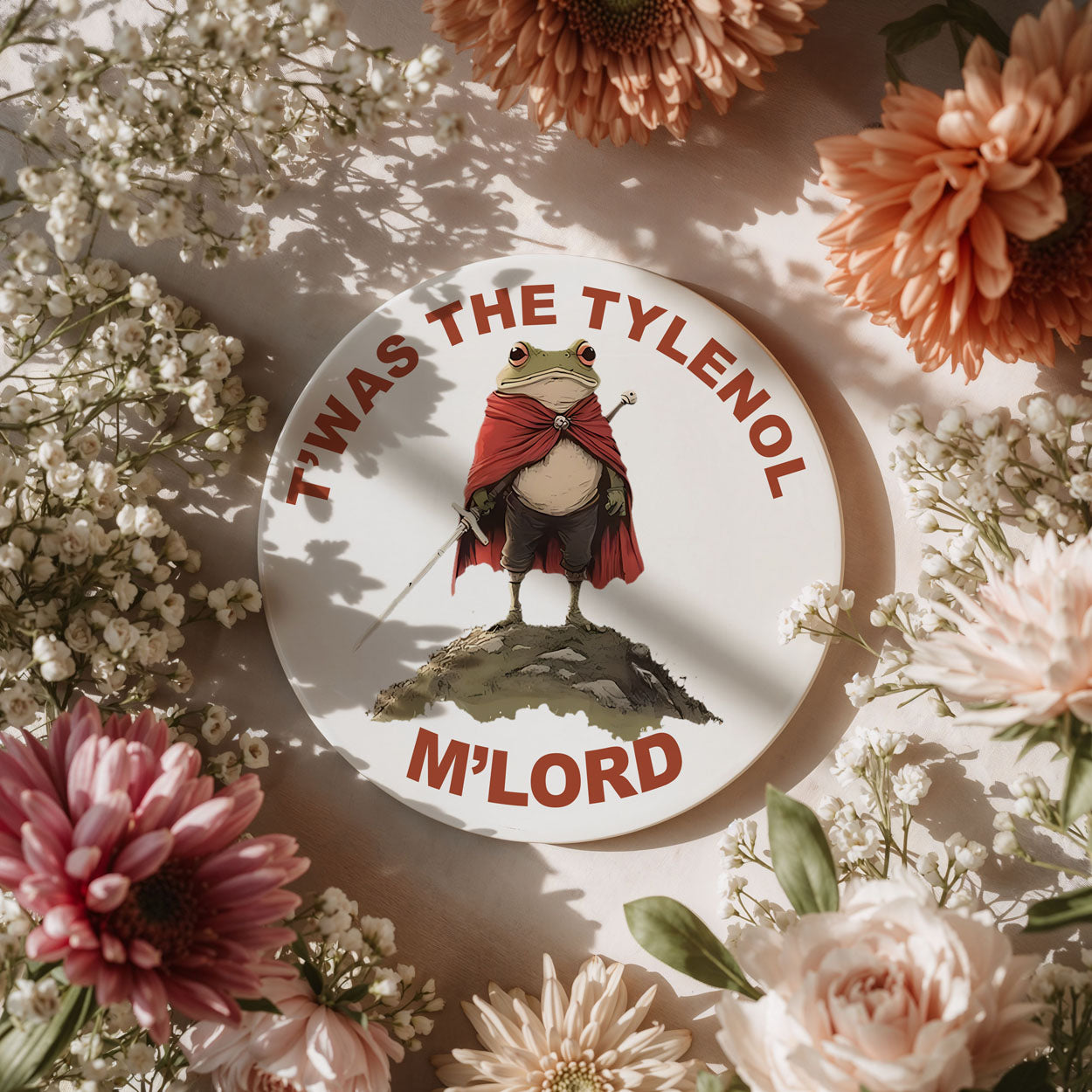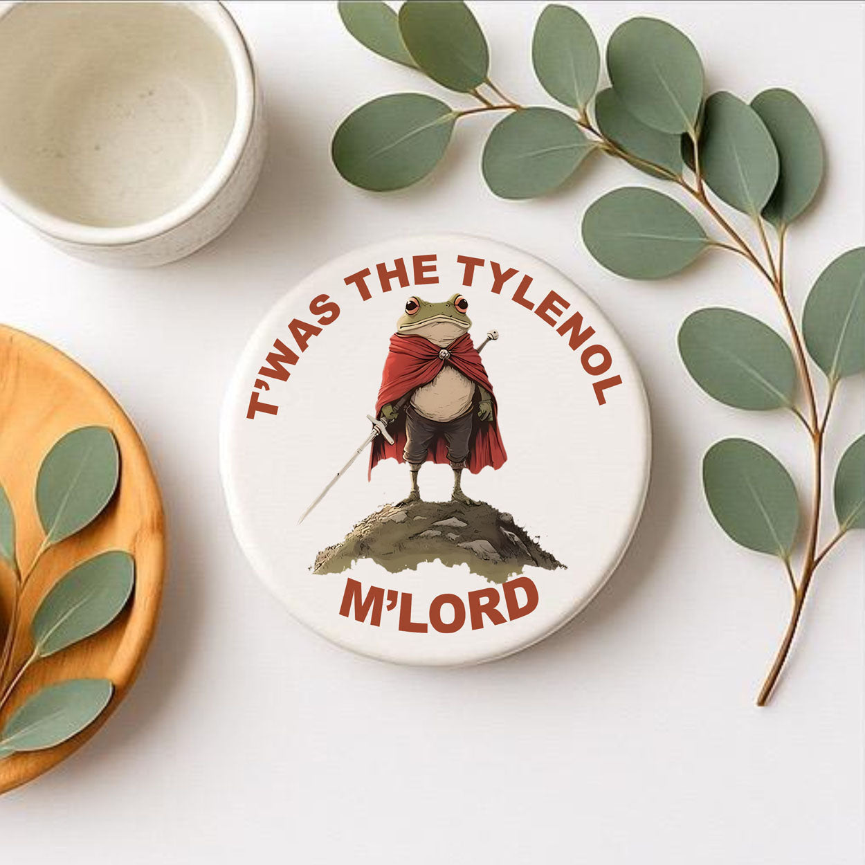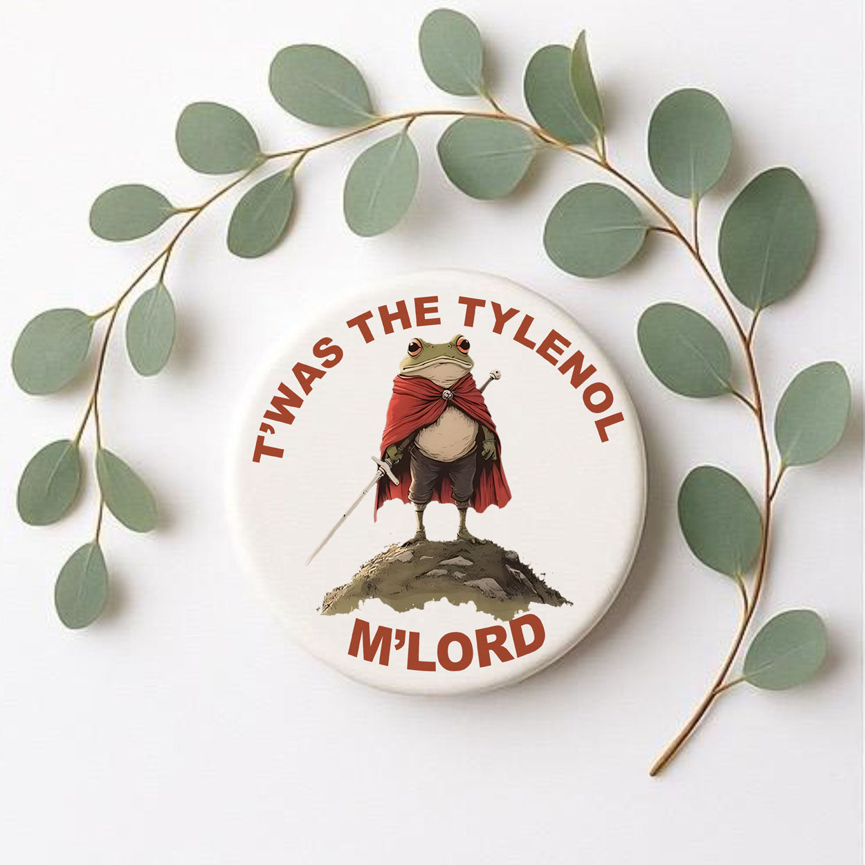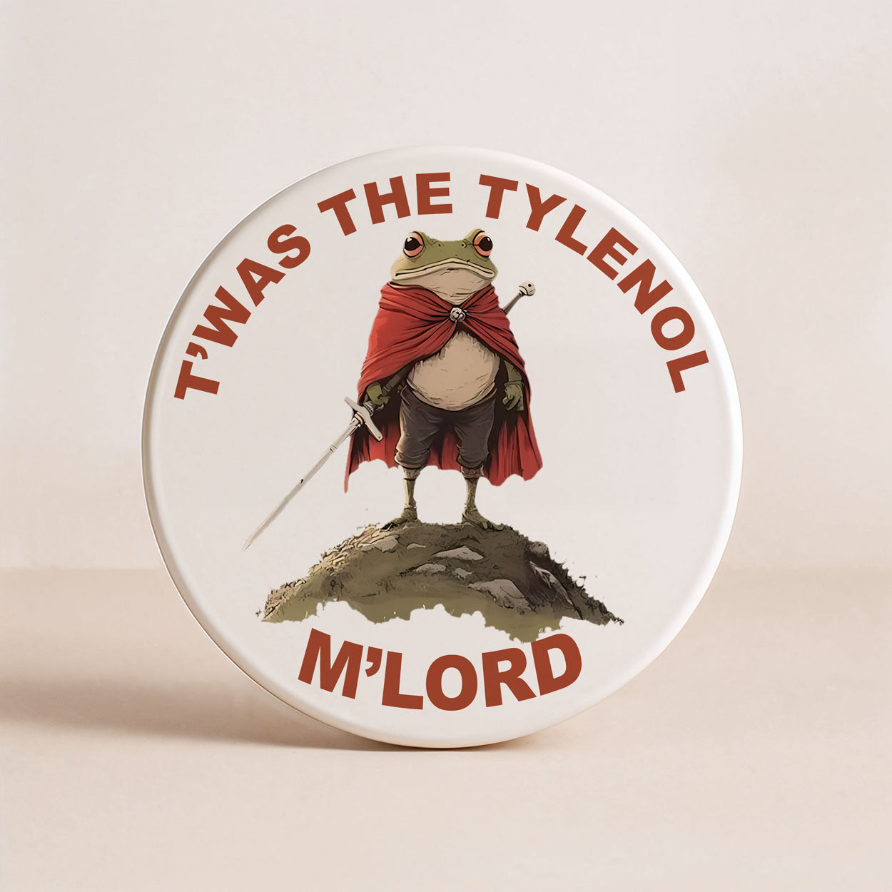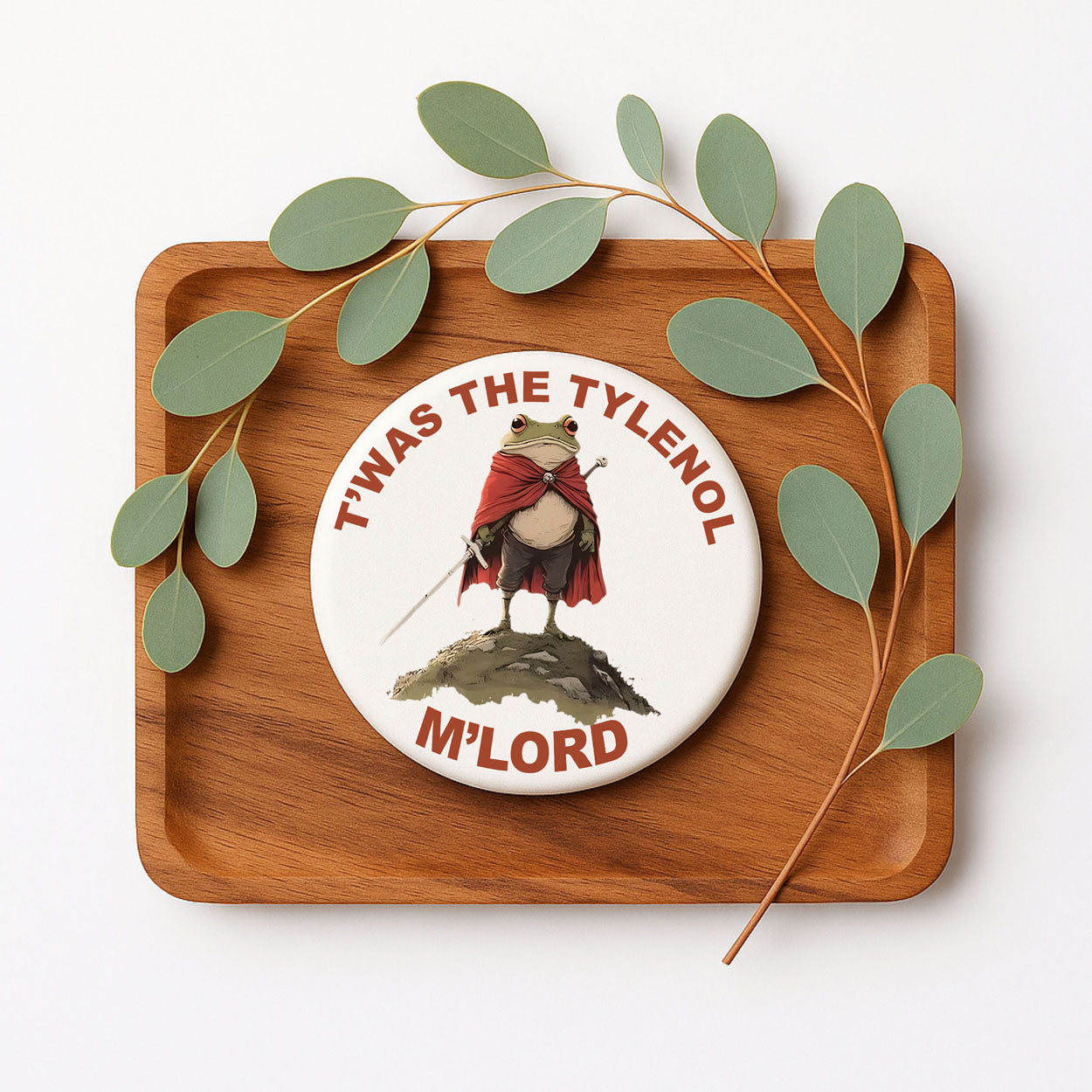- Tylenol M’Lord – Medieval frog hero with a sword and cape, here to slay headaches and bad policy.