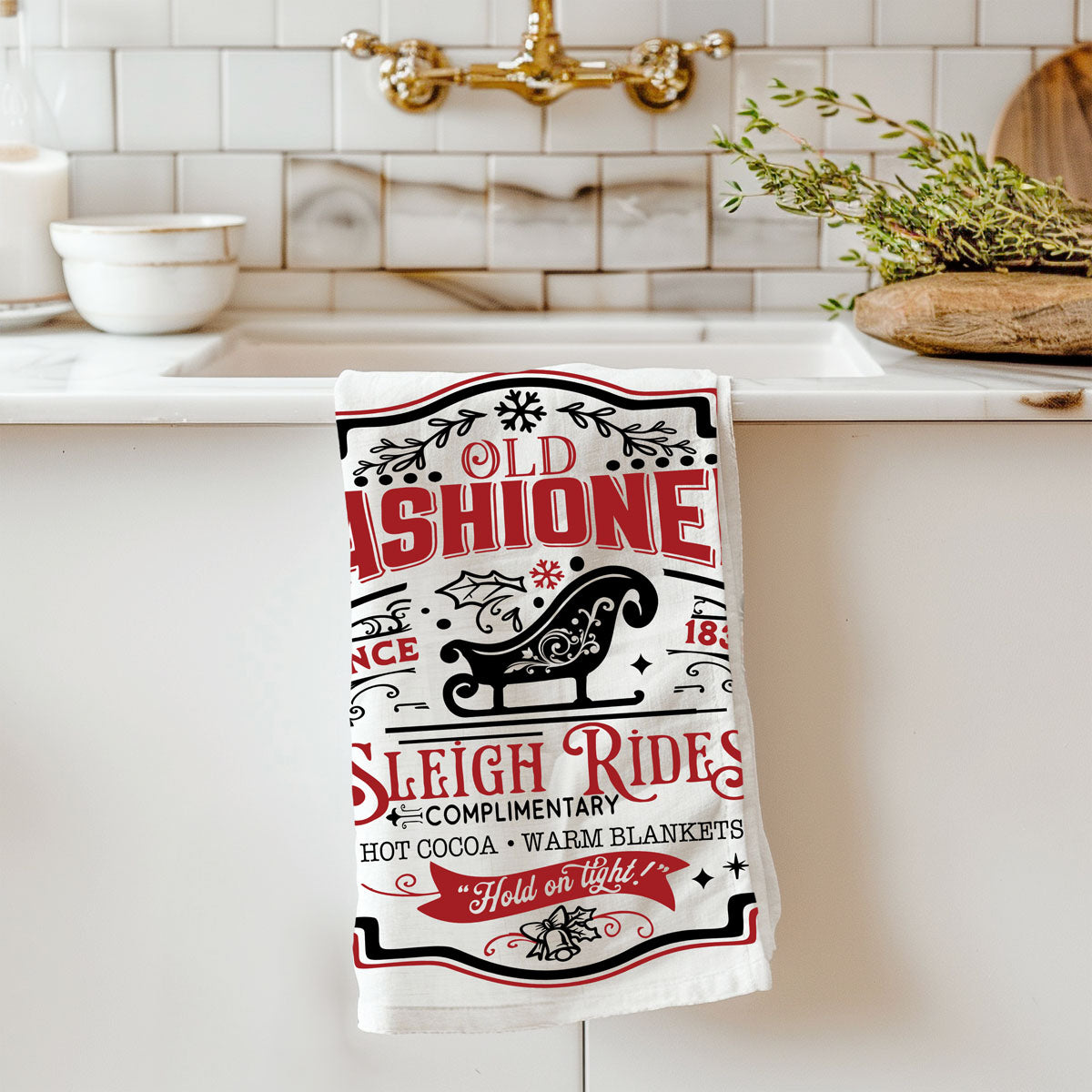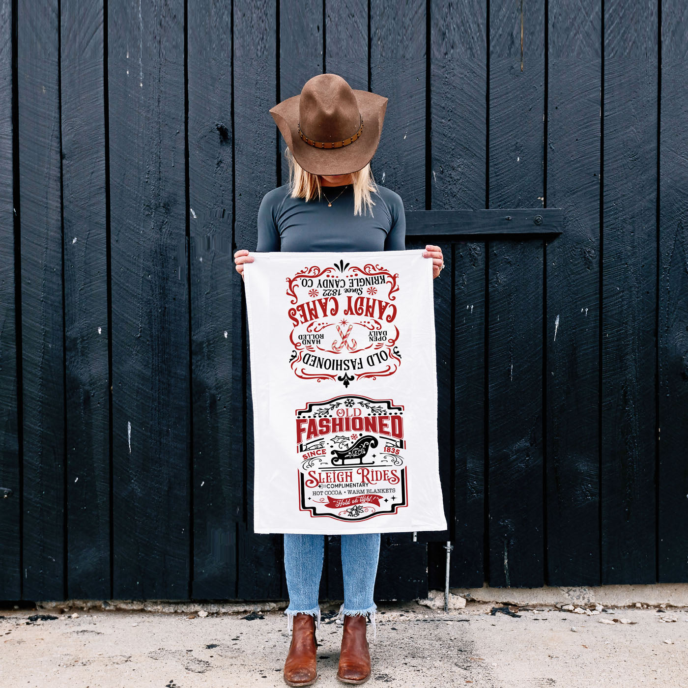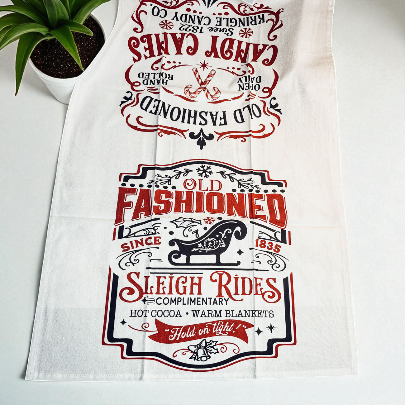 Old Fashioned Sleigh Rides & Candy Canes Kitchen Towel - Double the Vintage, Double the Holiday Magic! 🛷🍭