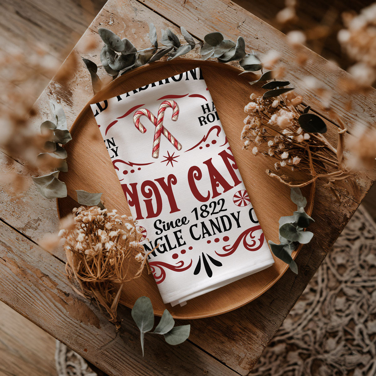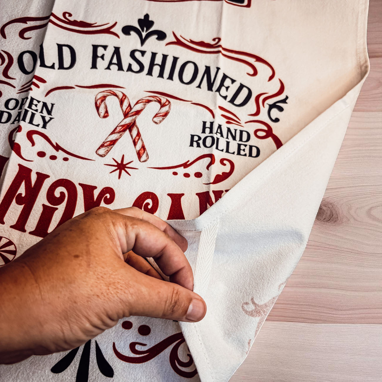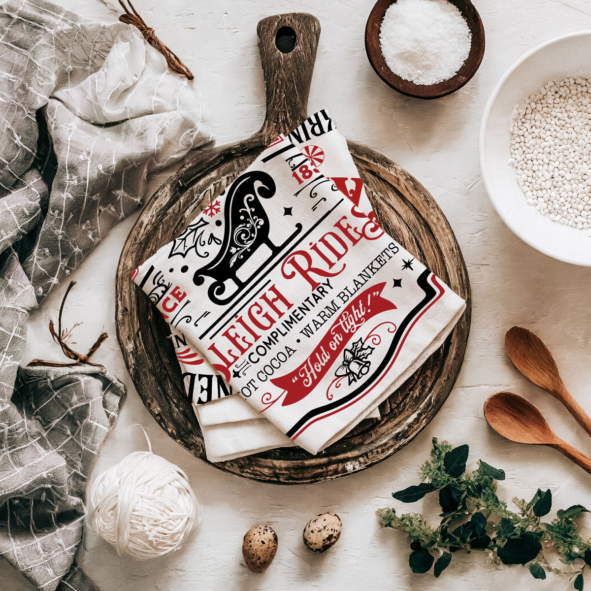 Old Fashioned Sleigh Rides & Candy Canes Kitchen Towel - Double the Vintage, Double the Holiday Magic! 🛷🍭